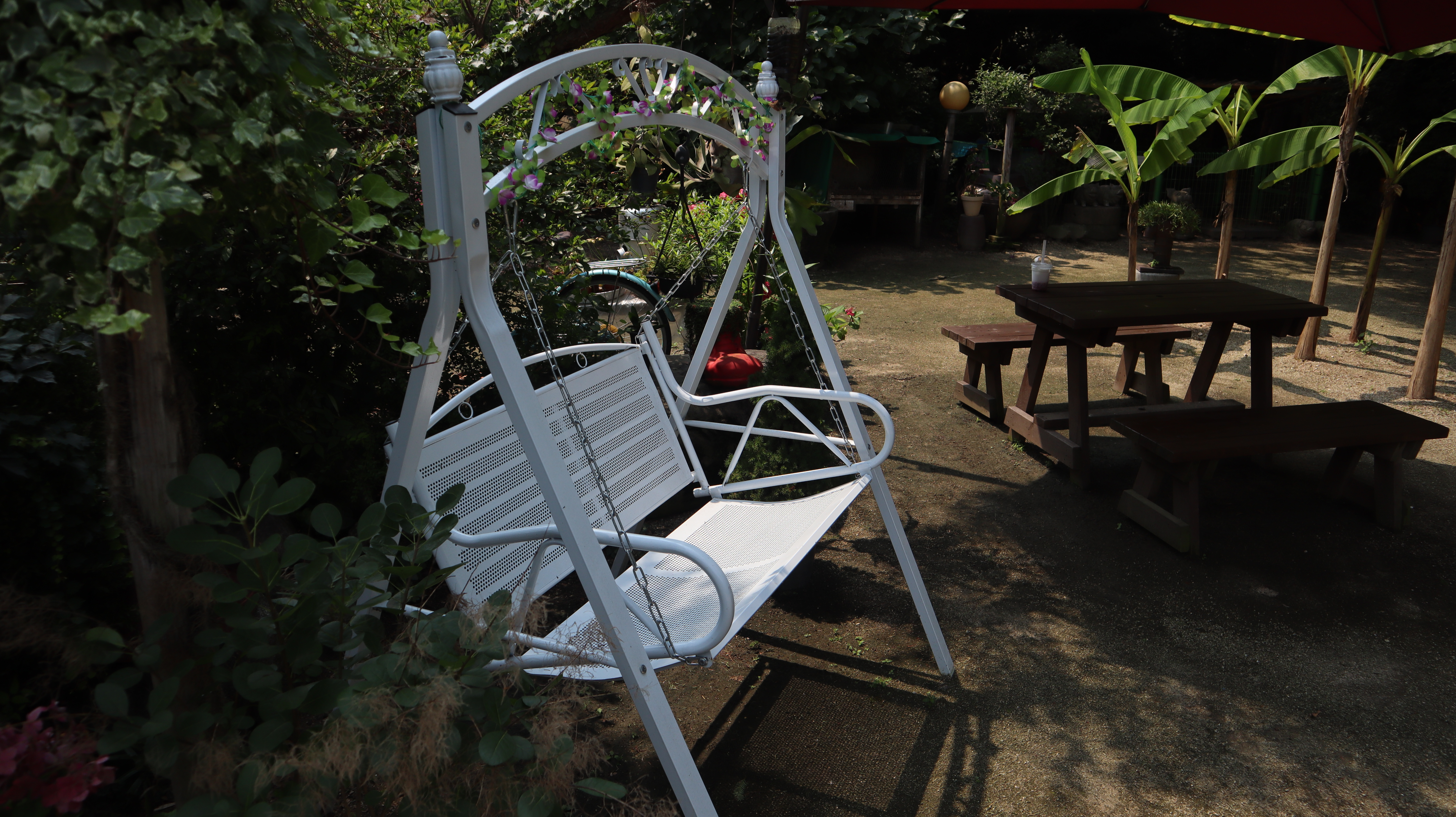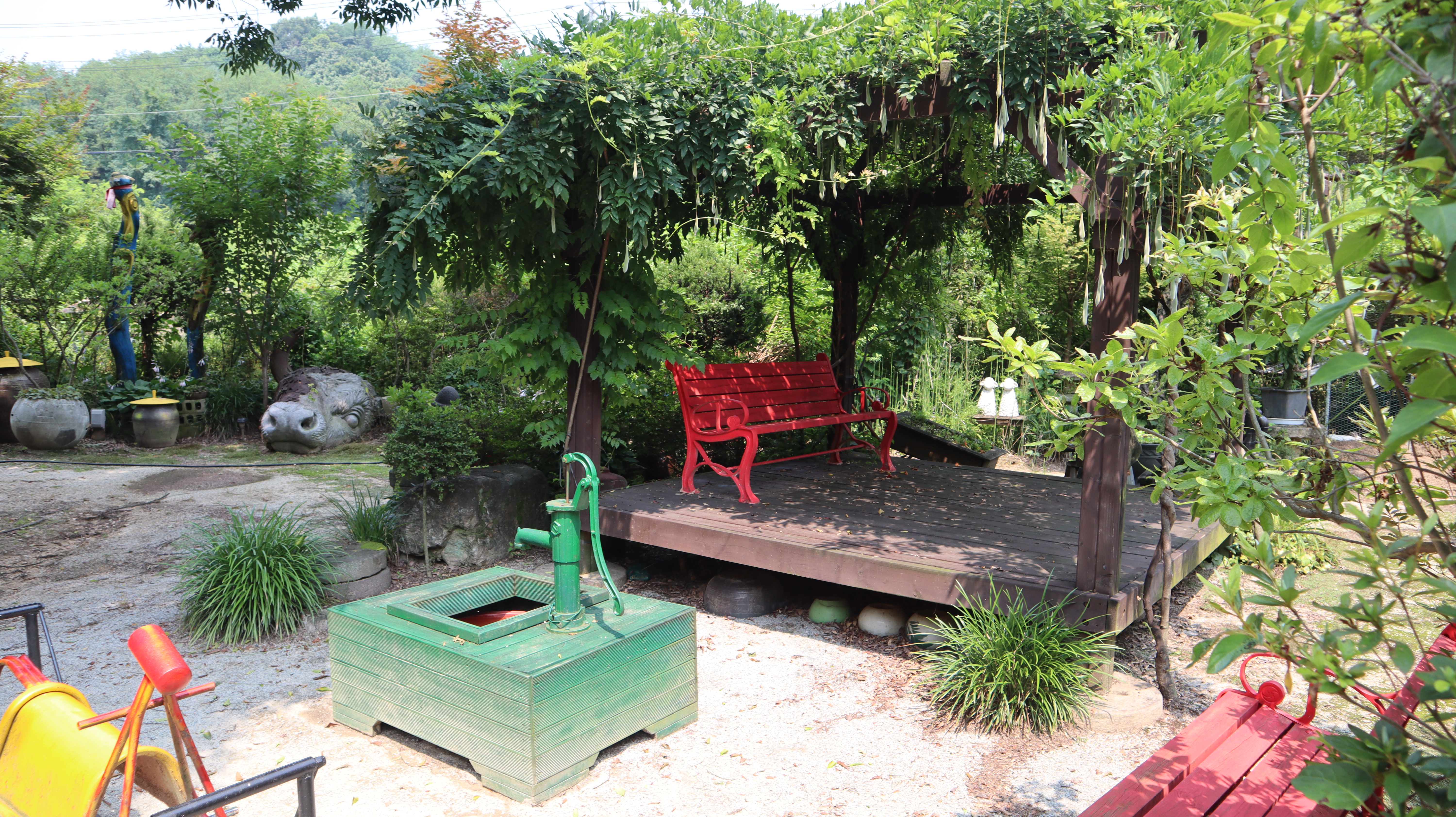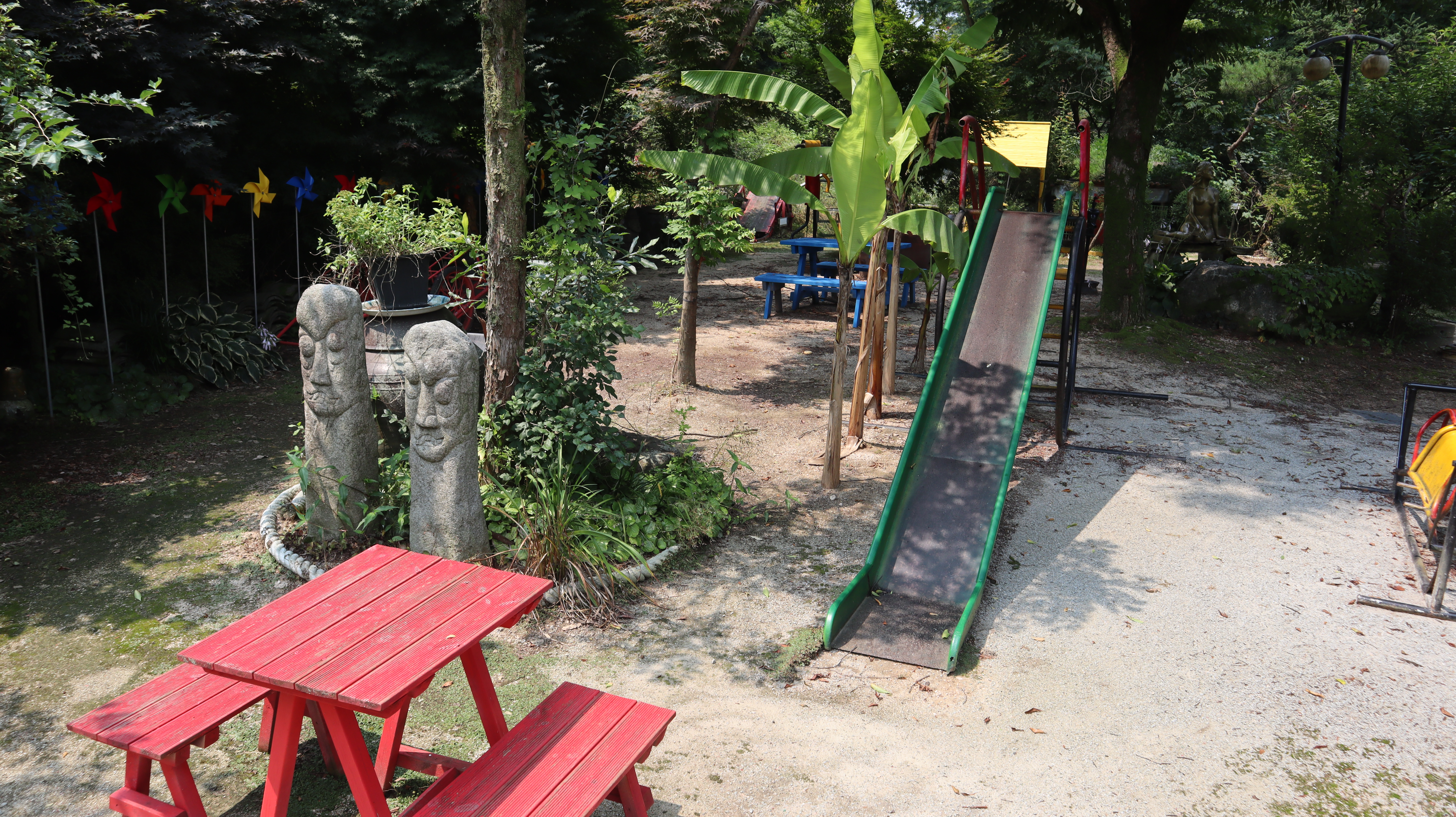 오래된 미끄럼틀부터 빨간색 강렬한 벤치까지... 다양한 볼거리들이 있습니다.