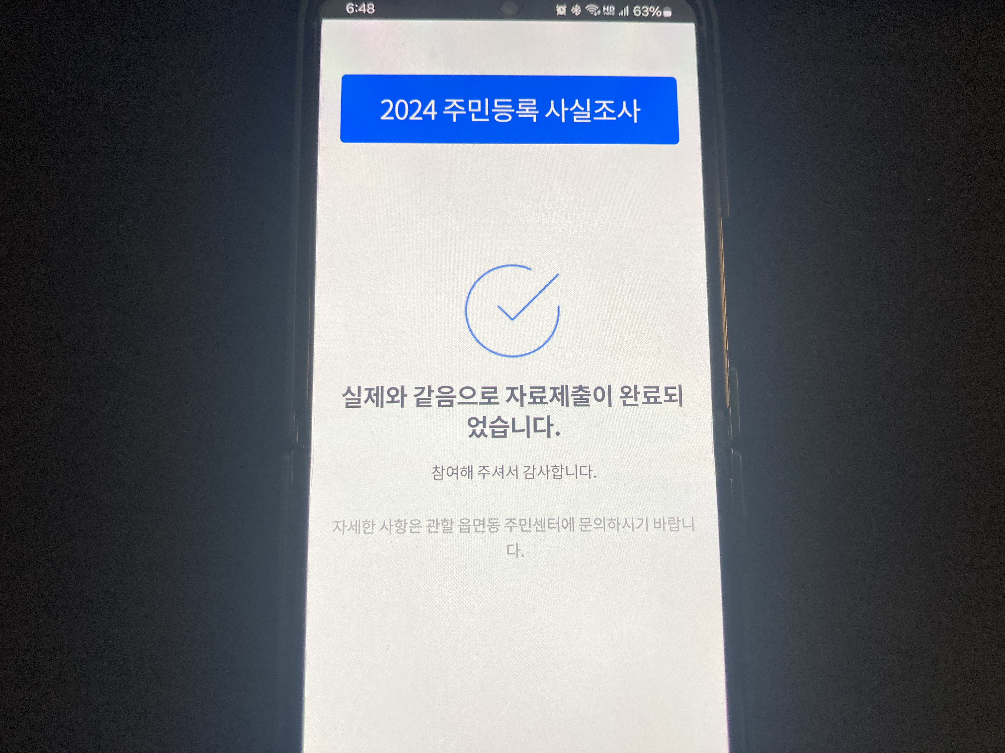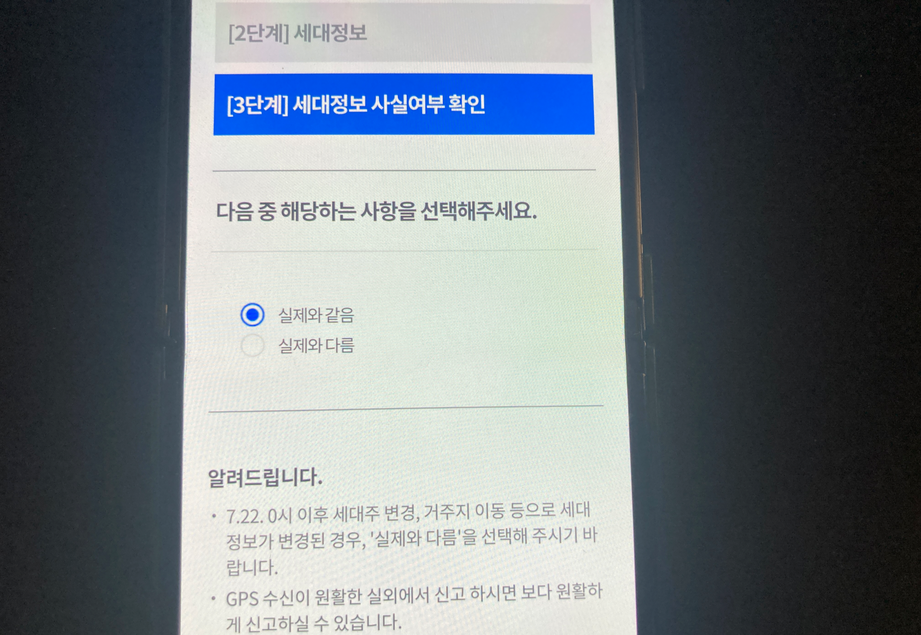 마지막으로 GPS를 통해 현재 위치에 대한 주소 확인 과정이 있고 일치하게 되면 2024 주민등록 사실조사 참여가 끝나게 됩니다.