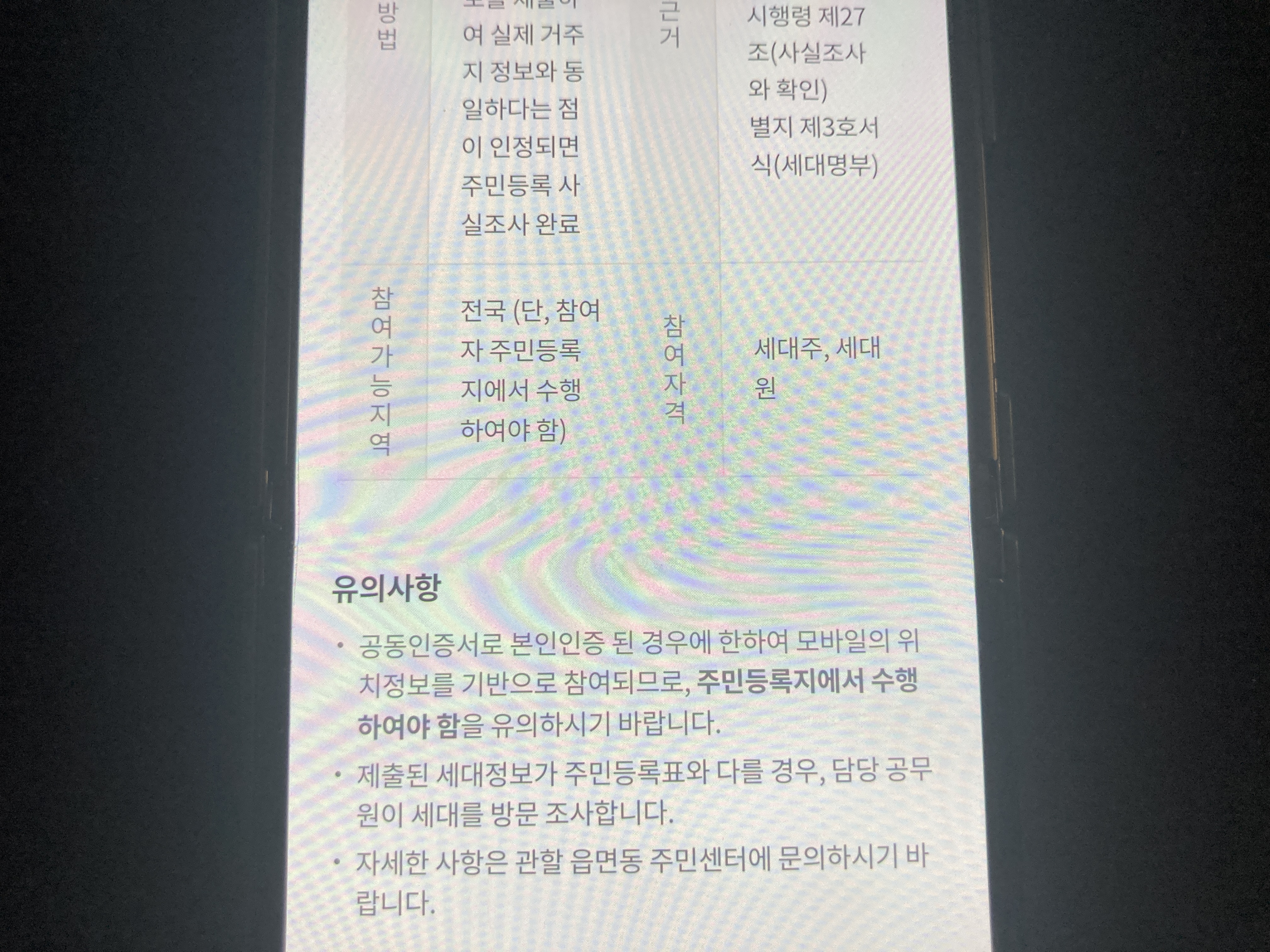 아파트 엘리베이터에 보니까 행정안전부에서 안내하는 2024 주민등록 비대면 사실조사 안내문이 붙어있더라고요. 세대주라면 참여해야하고, 비대면 참여기간에 참여하지 않으면 대면 조사가 이뤄진다고 하더라고요? 시간 맞추기도 힘들고... 불편할 것 같아서 비대면으로 참여했습니다. 처음에는 이름이 '주민등록 비대면 사실조사'라고 돼 있어서 뭔가 엄청 복잡하고 오래걸릴거라고 생각했었는데 막상해보니까 금방 끝나더라고요. 여러분들도 정부24 앱으로 비대면으로 진행해보시면 좋을 것 같아요.