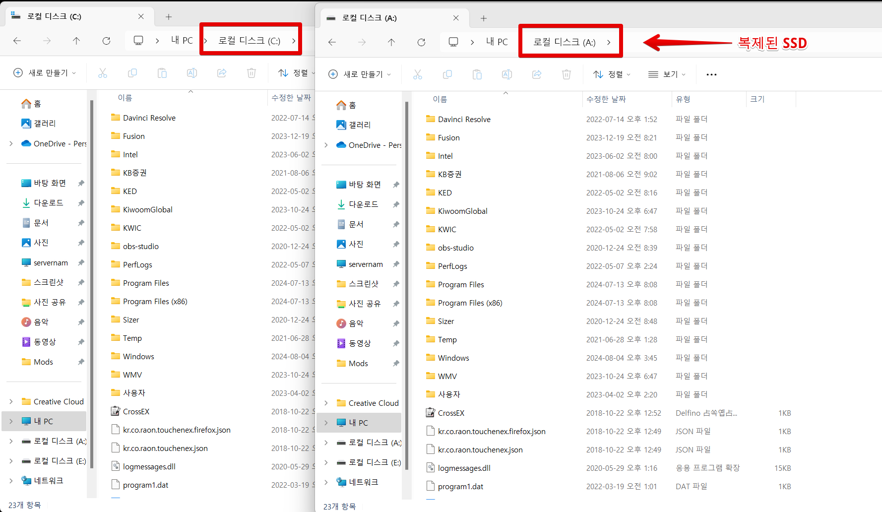 결과를 보면 C드라이브가 정상적으로 외장하드 SSD에 정확하게 그대로 복제된 모습을 볼 수 있었습니다. 사용법도 쉽고 무엇보다 백업 속도도 빠르고 정확도가 높아서 굉장히 만족스러운 결과였습니다.
