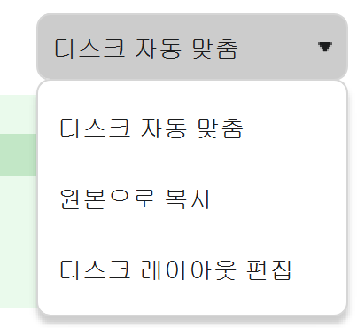 오른쪽에 메뉴가 또 있는데 디스크 자동맞춤으로 하면 알아서 잘 되더라고요. 디스크 자동 맞춤으로 진행해주었습니다.