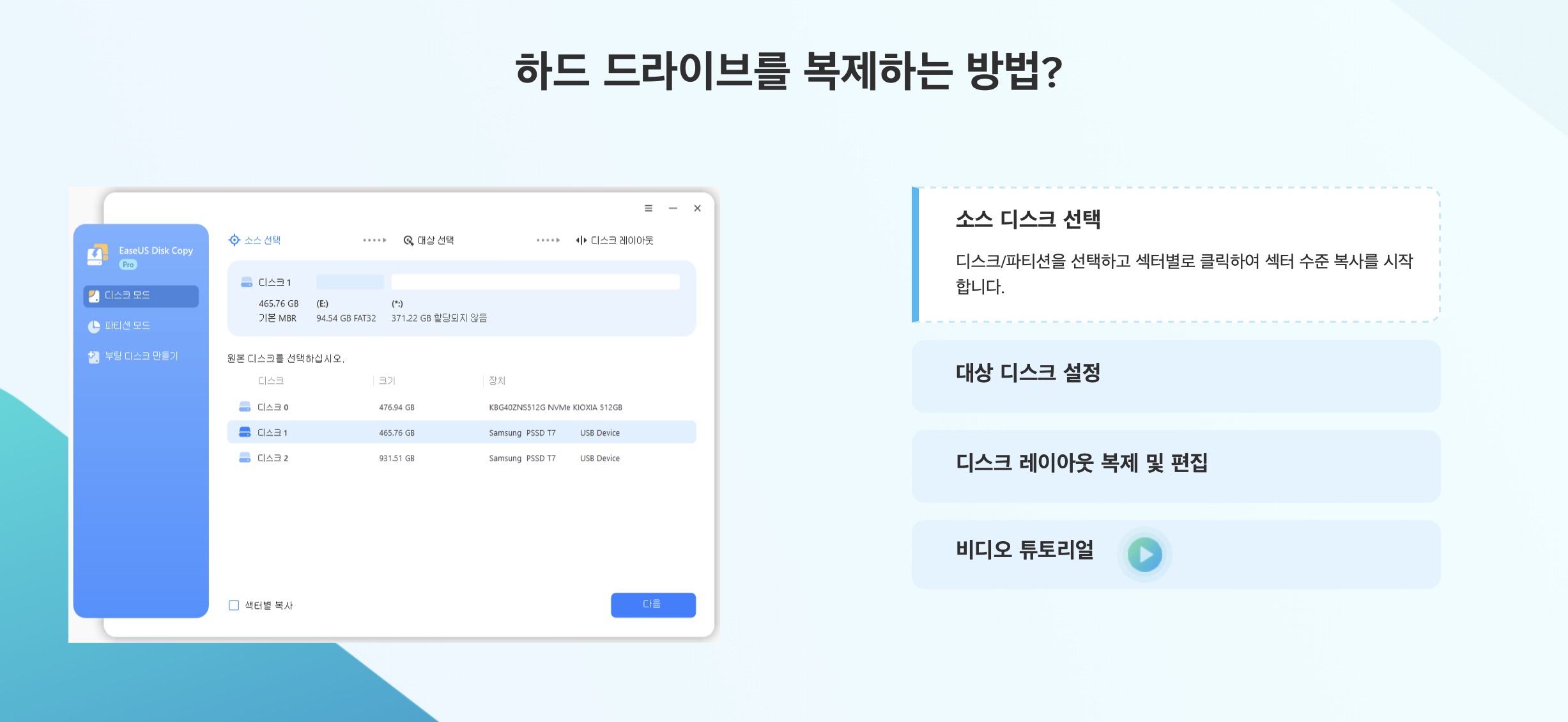 Windows PC용 빠르고 안전한 디스크 복제 소프트웨어 - EaseUS® Disk Copy Pro Edition