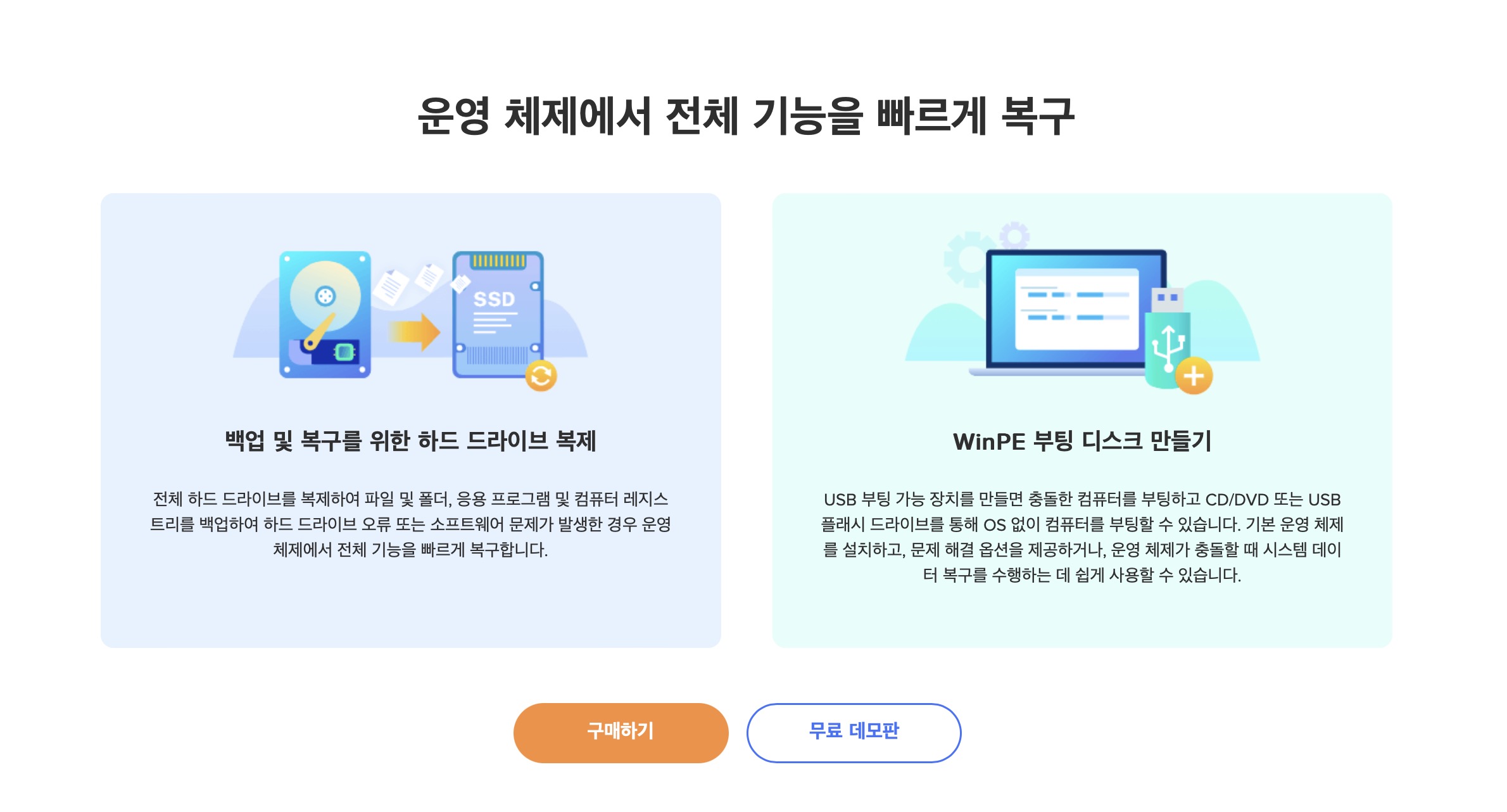 한 PC에서 다른 PC로 데이터를 빠르게 마이그레이션 할 때에도 유용하며 하드 드라이브의 로컬 백업을 효과적으로 생성할 수 있는게 이 프로그램의 장점인데요. 무료 데모판을 무료로 다운로드 후 설치할 수 있습니다.