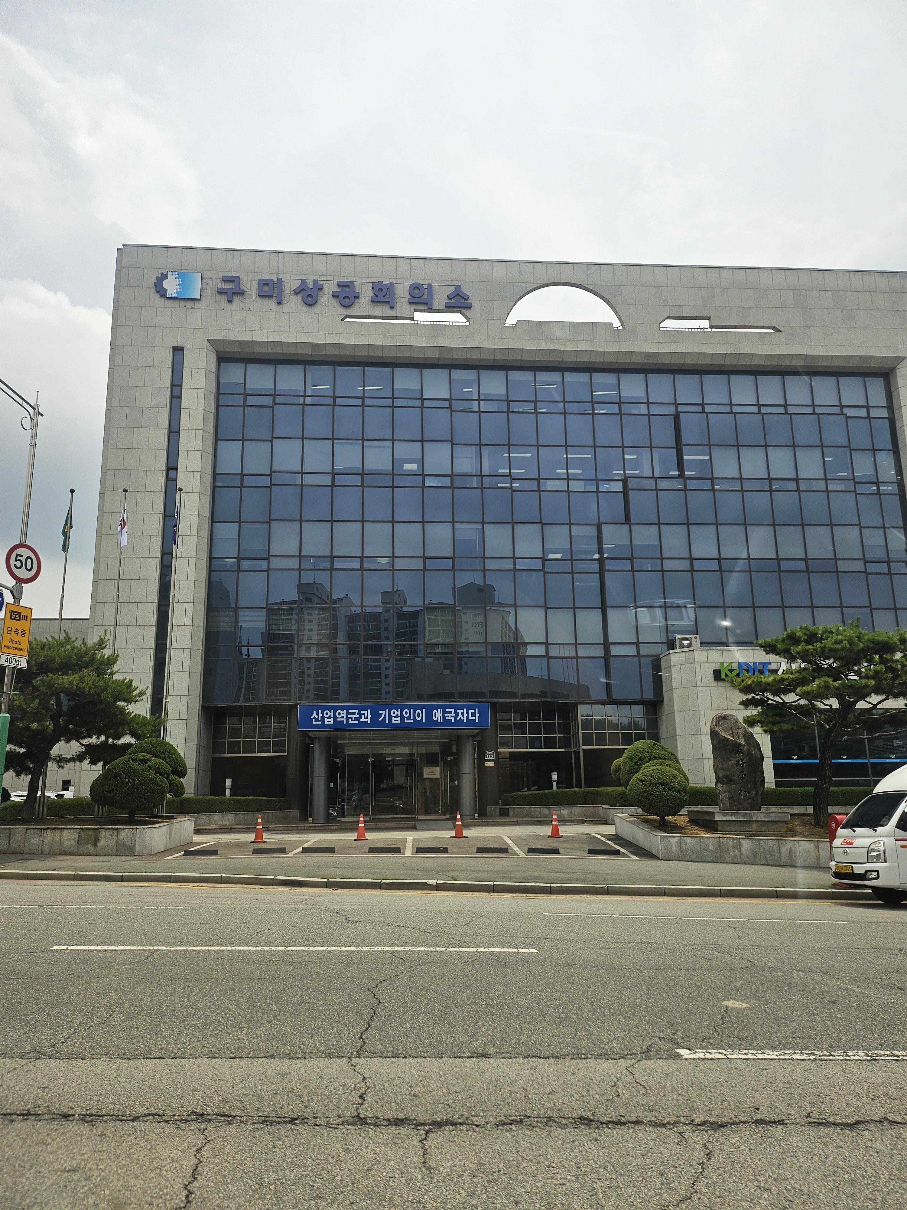 교육은 구미에 있는 구미상공회의소에서 진행되었습니다. IC에서 매우 가까워서 접근성이 좋더라고요. 구미상공회의소에는 KOTRA구미분소, GS칼텍스, 지식재산센터, 신용보증기금, 상공회의소, 우리은행 구미지점 등 다양한 시설들이 모여있었습니다.