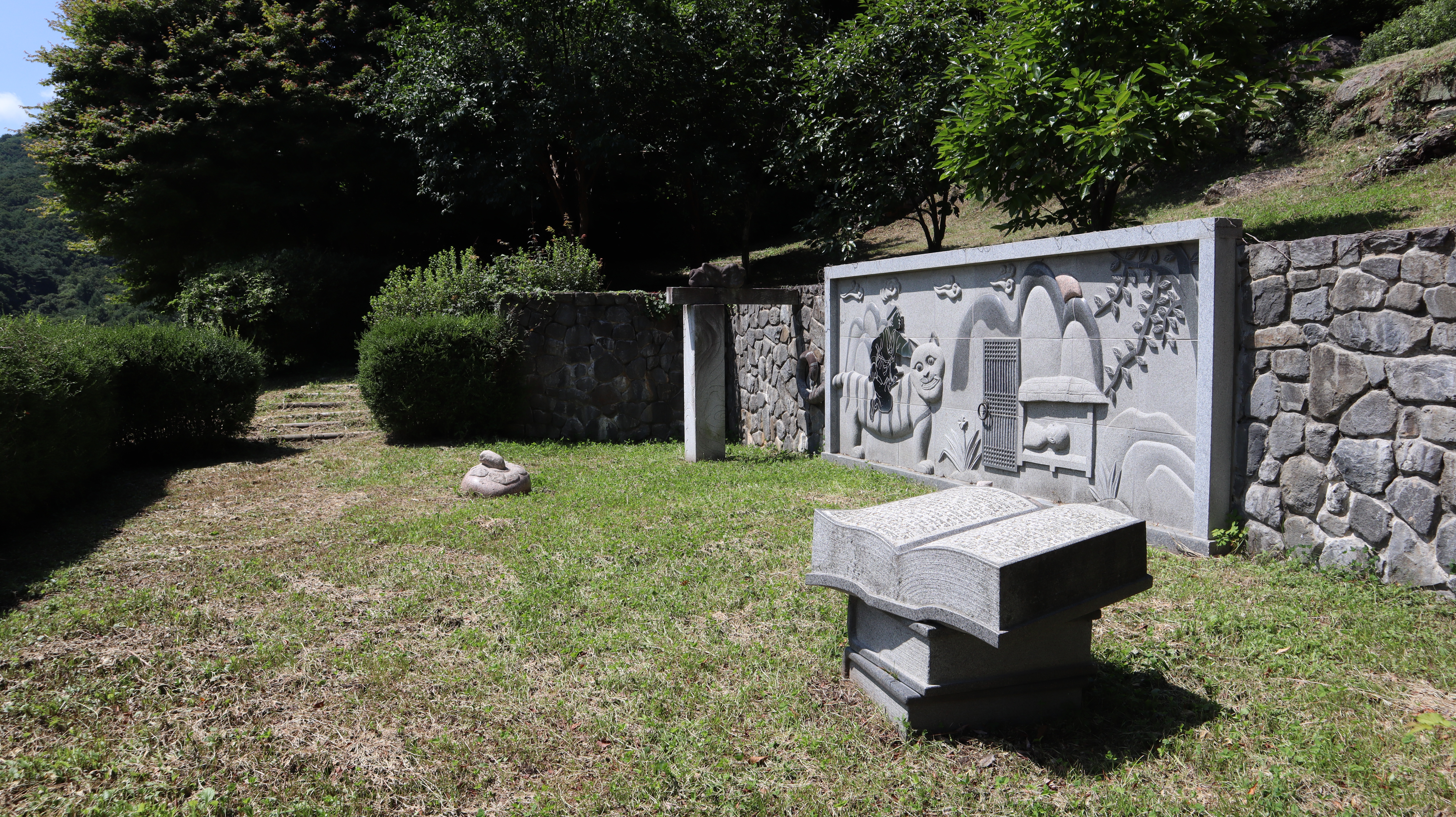 생가 주변으로 책 모양의 구조물, 호랑이 동상 등이 있는데 이것들 모두 도시복 스토리와 연결되어 있는 것들입니다. 예를들어 솔개가 물어다 준 고기와 호랑이가 가져다 준 홍시를 부모님께 드리며 효도를 했다는 이야기가 유명합니다.