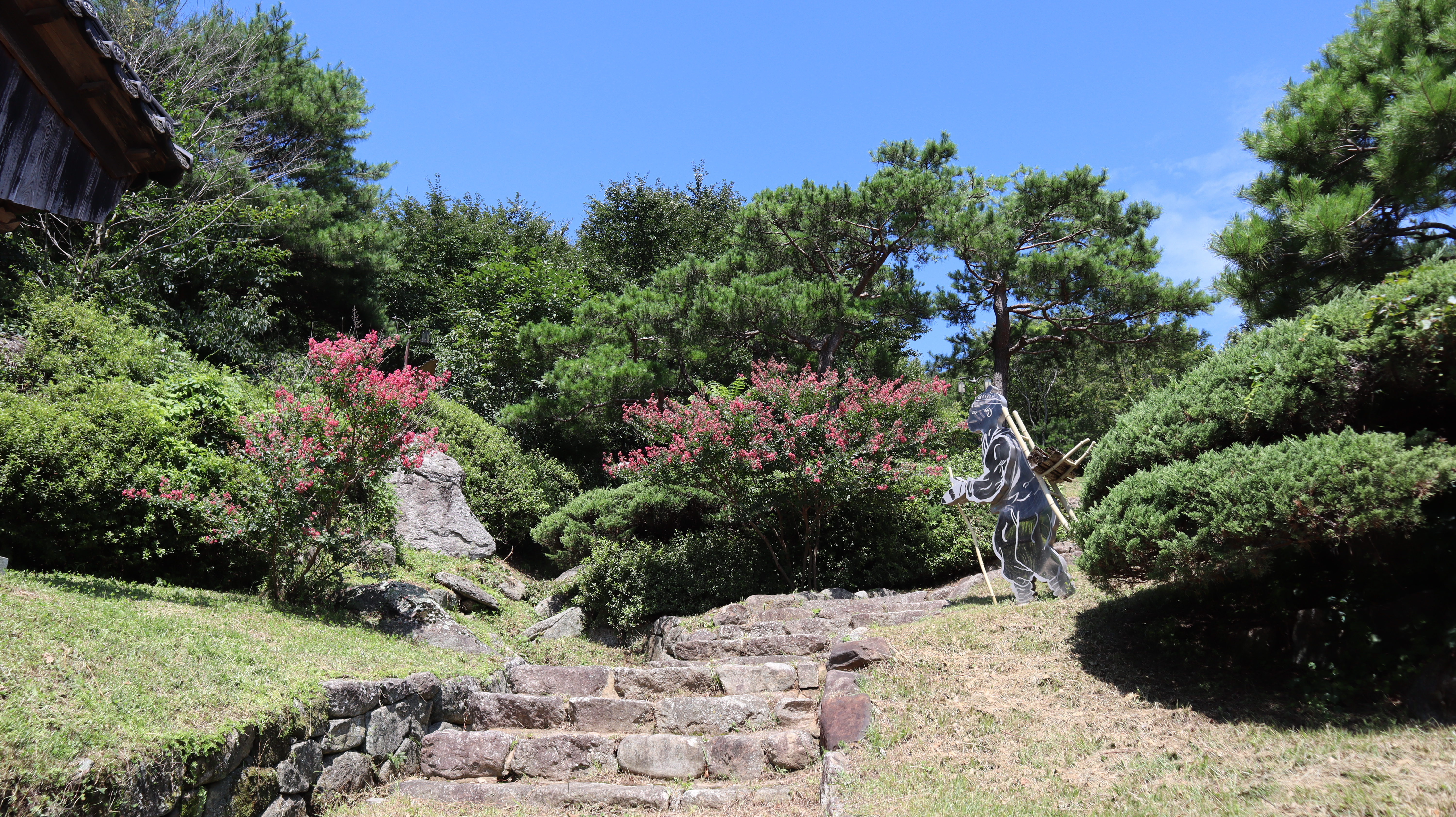 예천 도시복 생가로 올라가는 길입니다. 야트막한 계단이 있는데 옛 것 그대로의 모습이며 도시복이라는 인물을 상징화한 구조물도 눈에 띕니다.