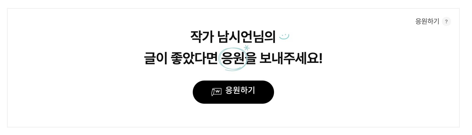 이제 블로글 하단에 이런식으로 응원하기 버튼이 추가되었습니다. 말 그대로 후원, 도네이션 시스템인데 얼마나 효과가 있을지는 솔직히 잘 모르겠습니다.