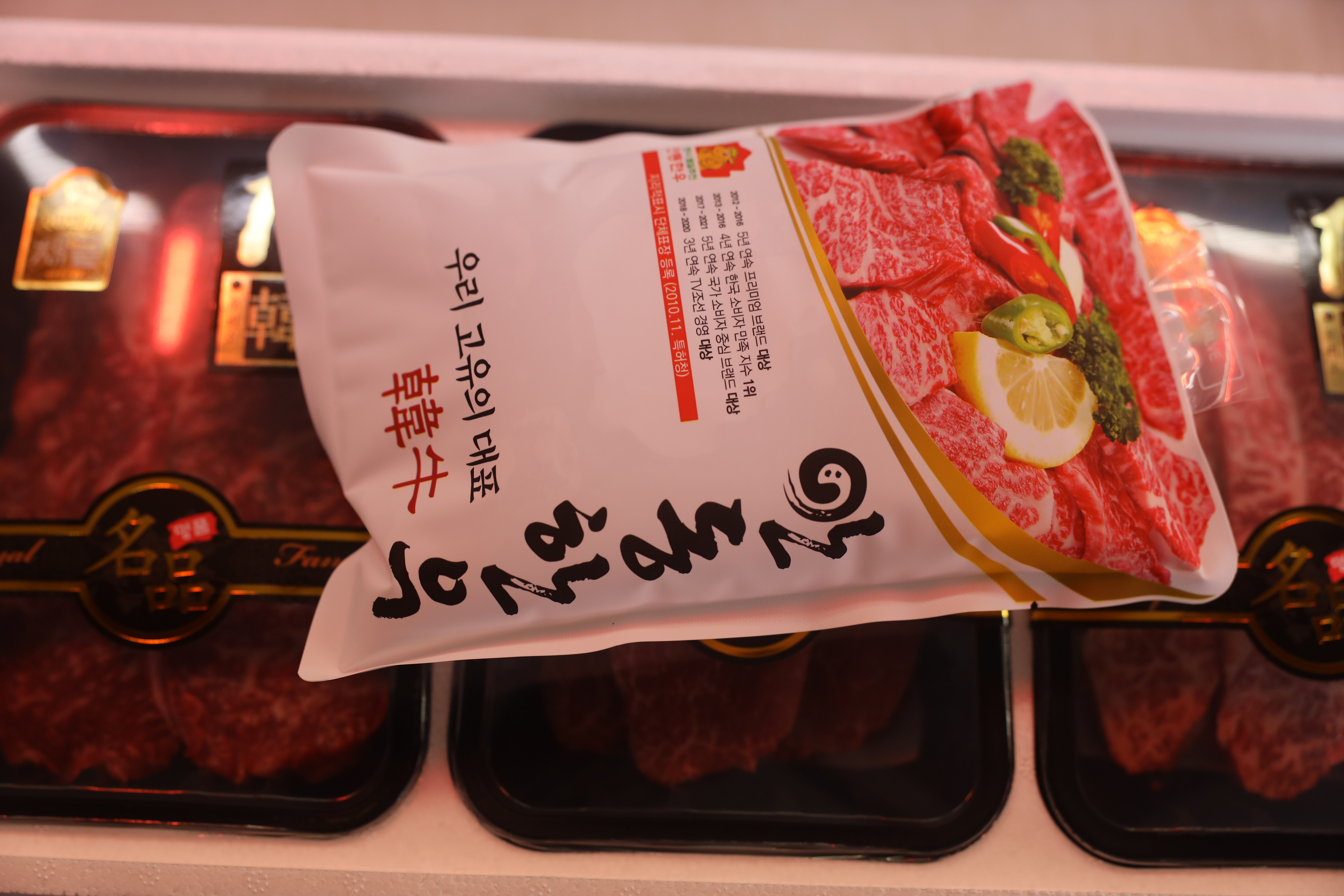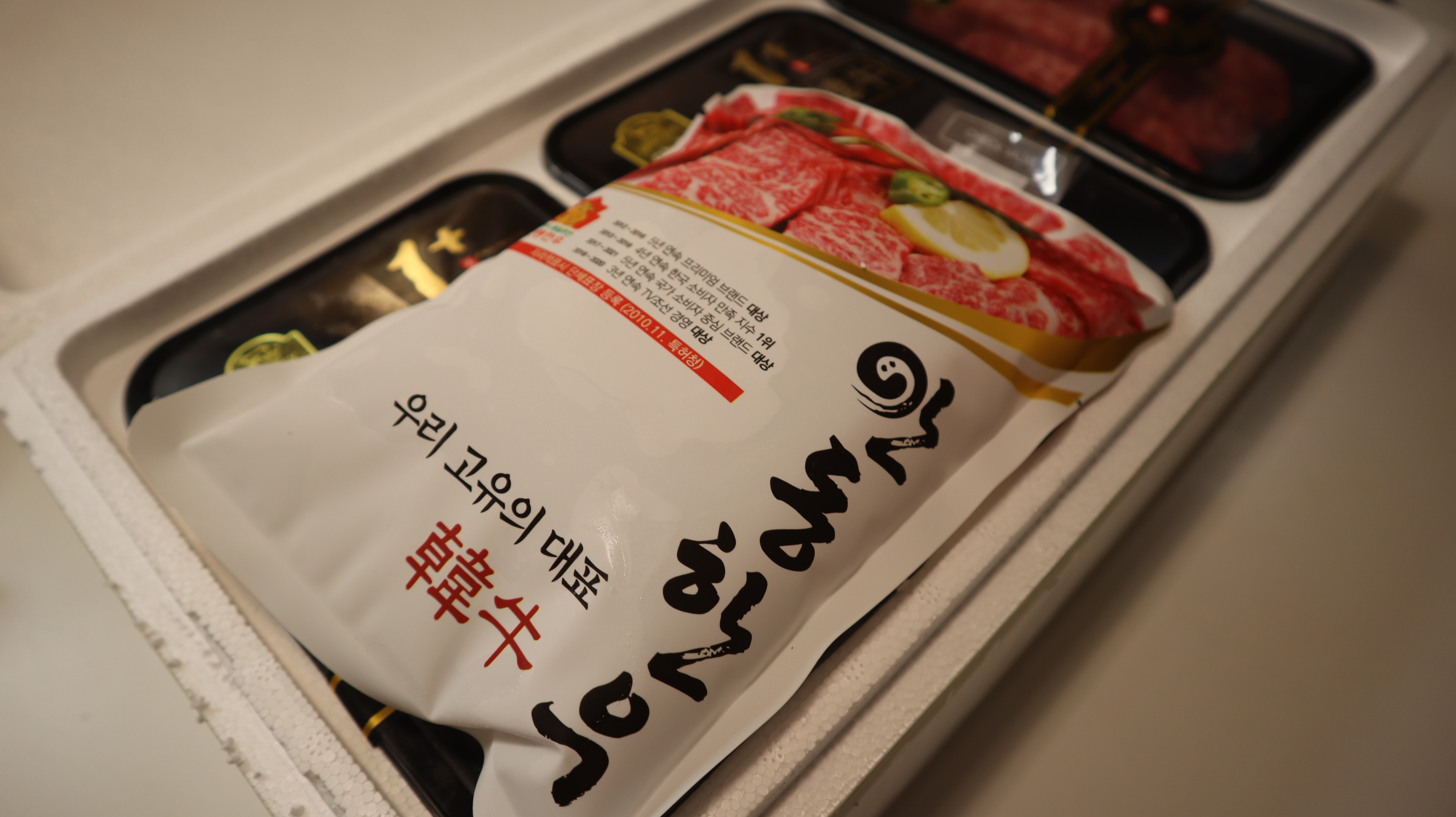 이런식으로 산소포장 및 스티커를 붙여서 포장을 해주십니다. 산소포장으로 빵빵하게 포장된 고기를 보니 선물세트를 선물하는 사람의 마음도 뿌듯해지네요.