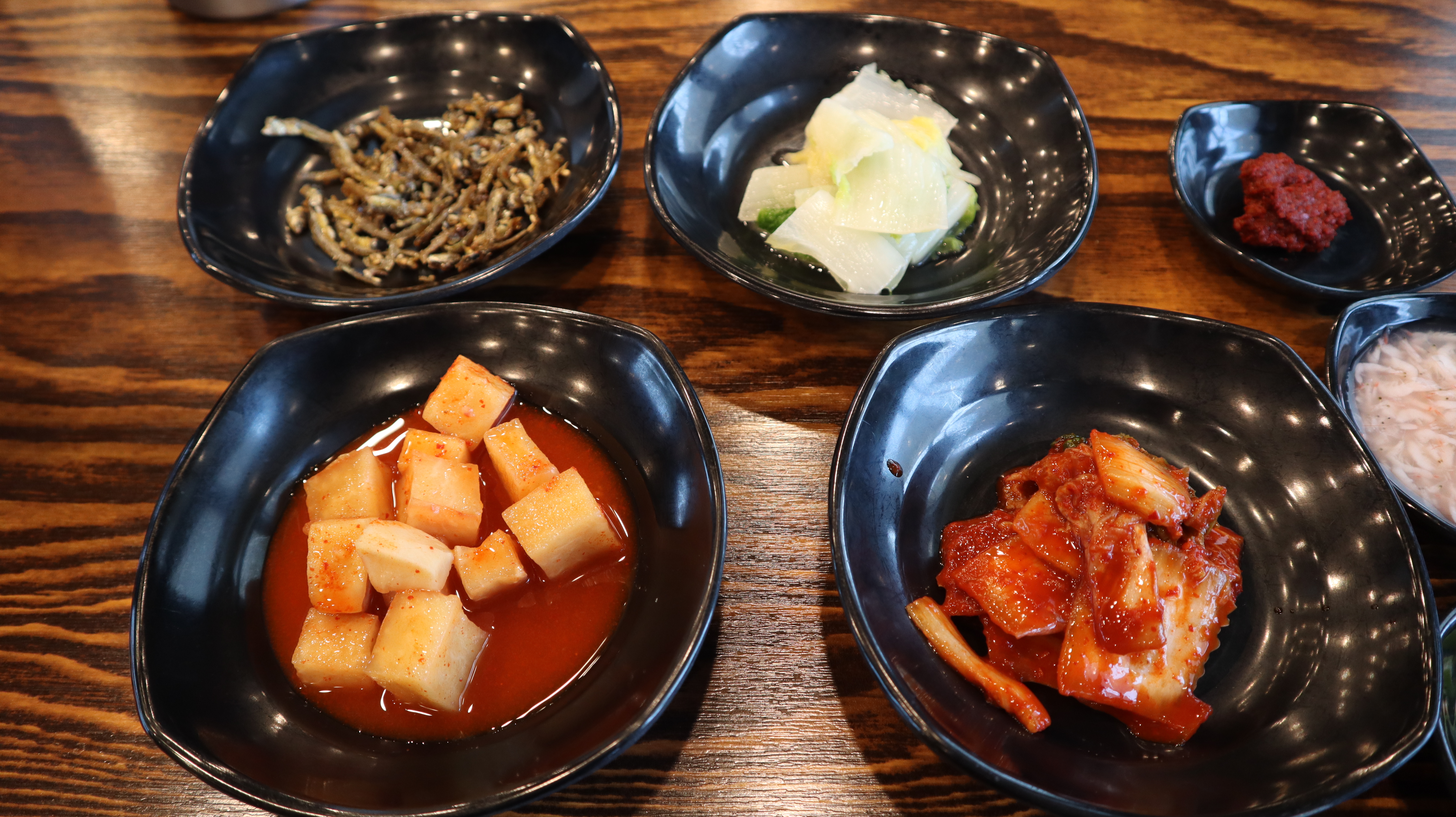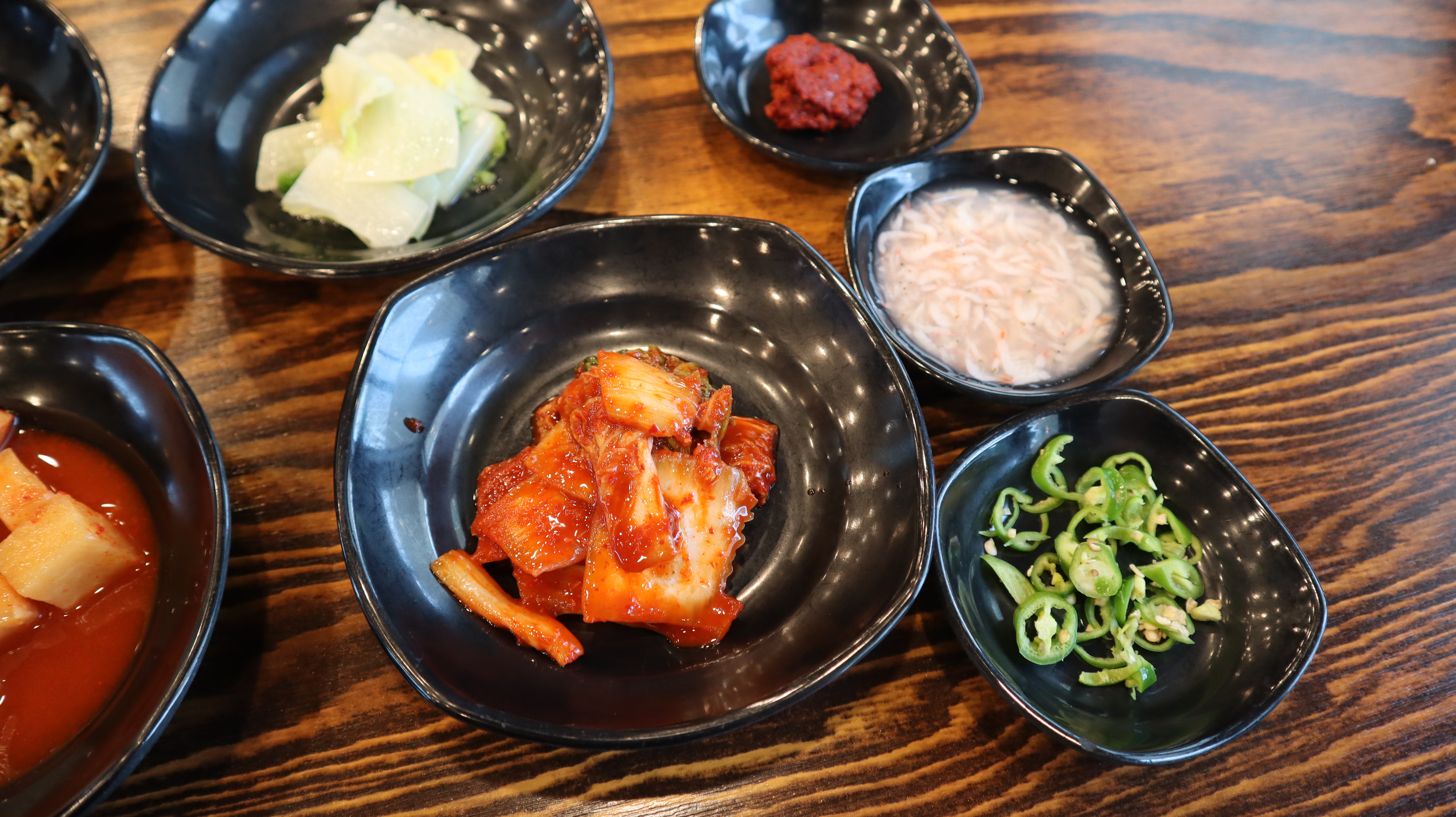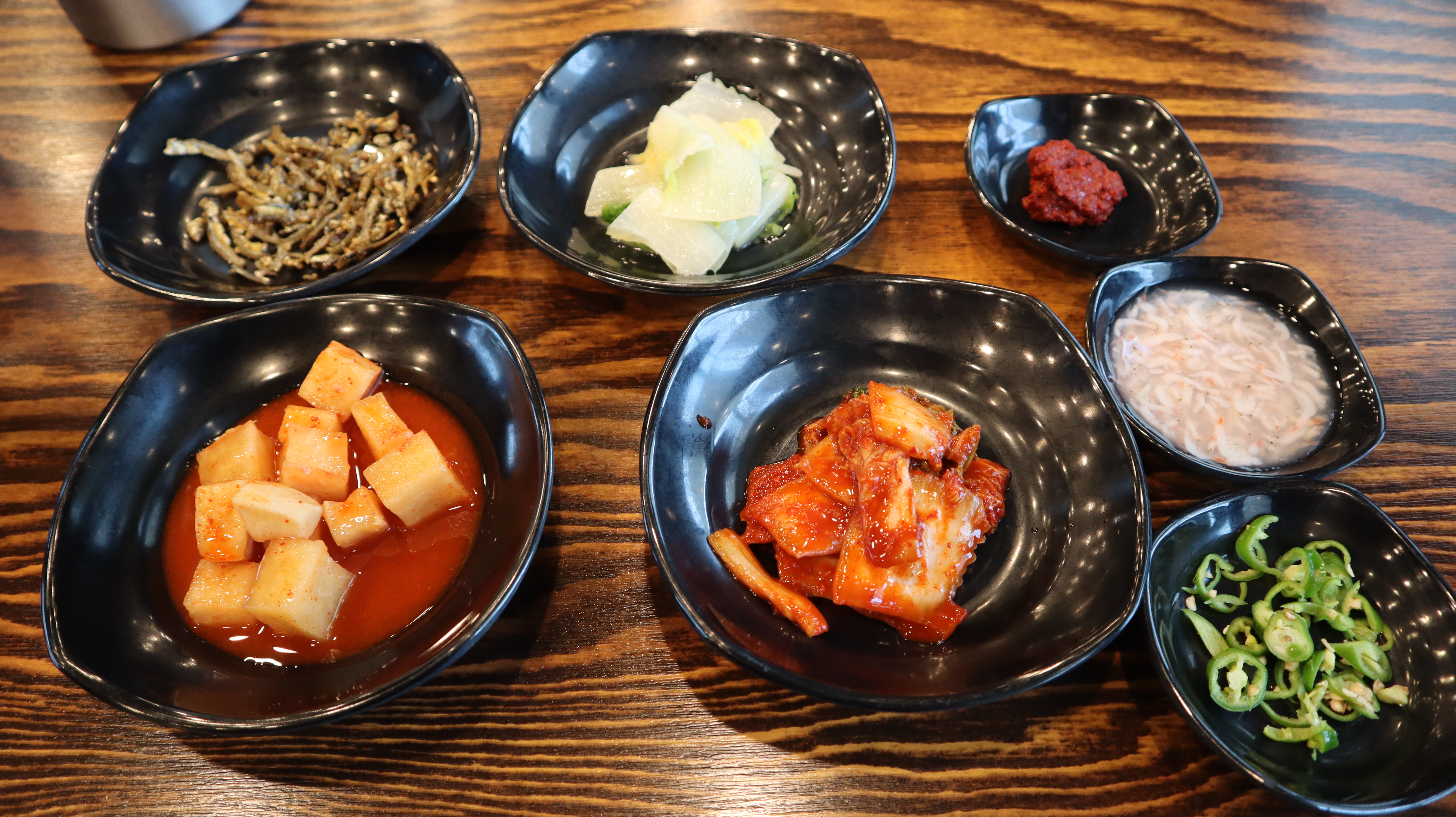 주문 완료하게 되면 기본 밑반찬 내어주는데 깔끔하고 정갈한 편입니다. 김치가 특히 맛있습니다. 부족한 밑반찬은 카운터쪽으로 가게 되면 셀프바가 있어서 리필할 수 있습니다.