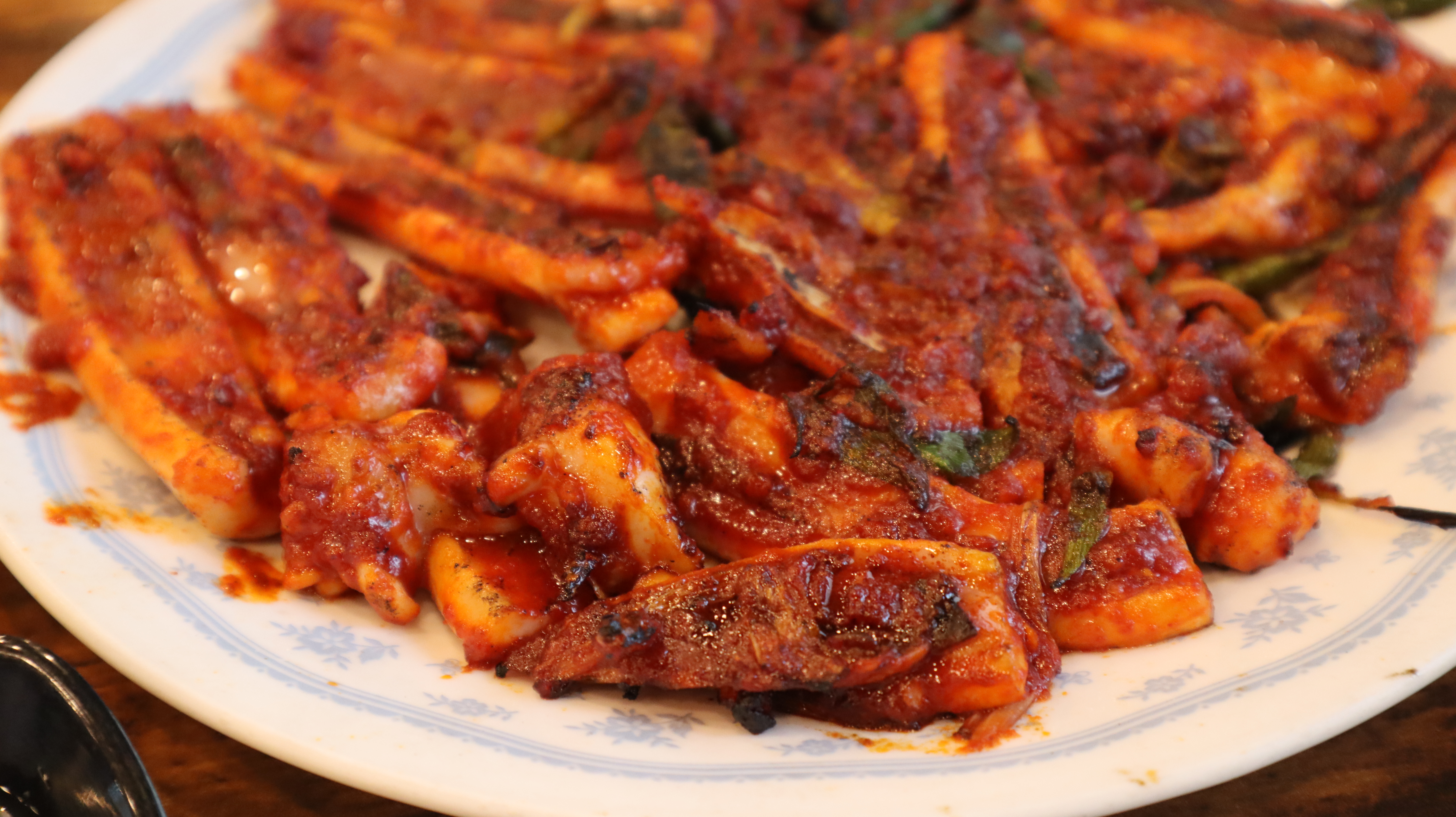 오징어불고기가 먼저 나왔네요. 석쇠구이 스타일인데 맛있게 매콤하면서도 불맛이 잘 살아있어서 정말 맛있는 메뉴이고 예전부터 제가 좋아했었던 메뉴이기도 합니다. 국밥과 함께 먹으면 더욱 좋습니다!