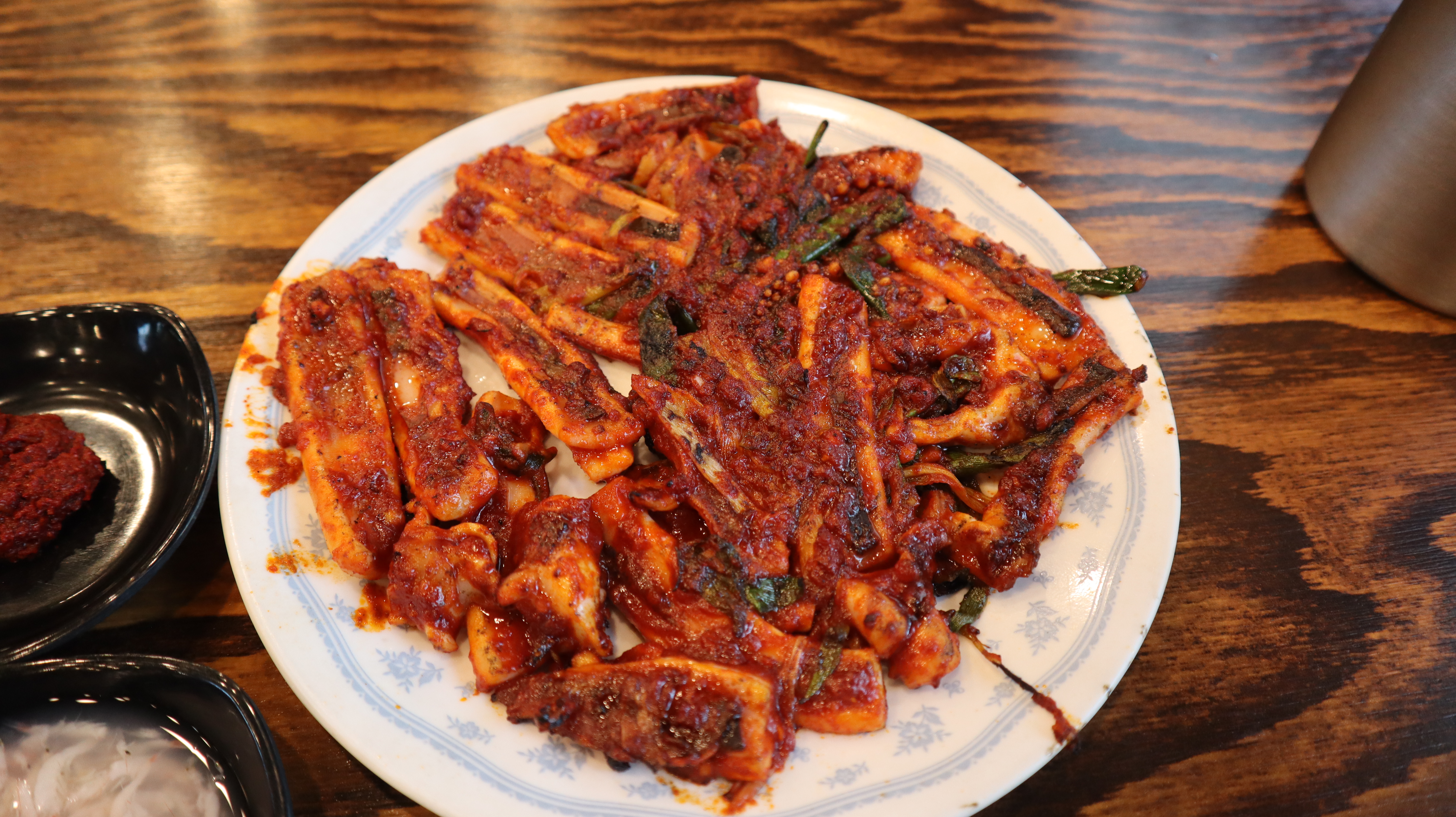 오징어불고기가 먼저 나왔네요. 석쇠구이 스타일인데 맛있게 매콤하면서도 불맛이 잘 살아있어서 정말 맛있는 메뉴이고 예전부터 제가 좋아했었던 메뉴이기도 합니다. 국밥과 함께 먹으면 더욱 좋습니다!