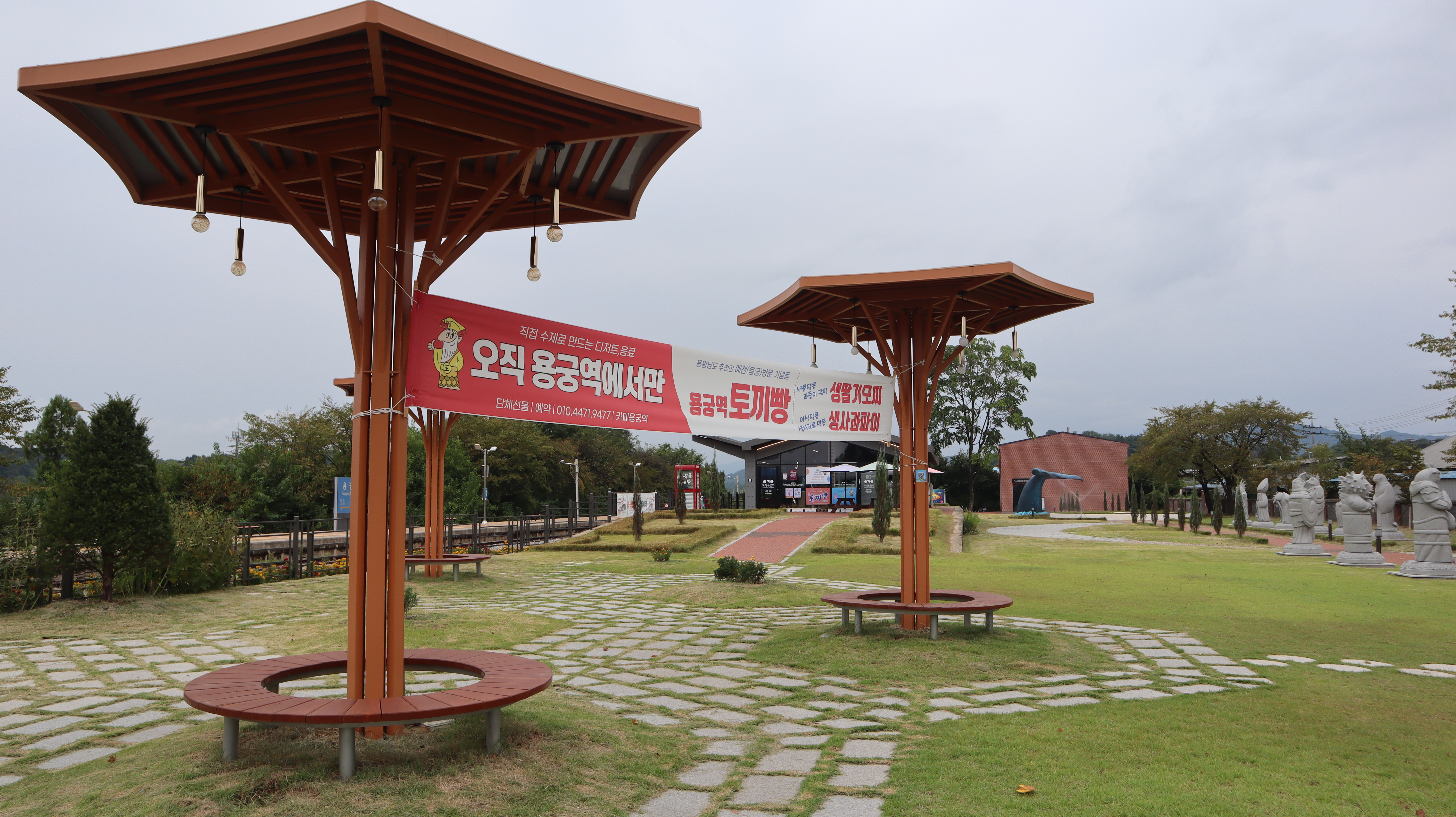 현재 예천의 용궁역 주변은 테마공원 사업이 완료되면서 과거보다 볼거리가 많이 늘어났습니다. 별주부전 스토리의 다양한 조형물들을 만나볼 수 있습니다.