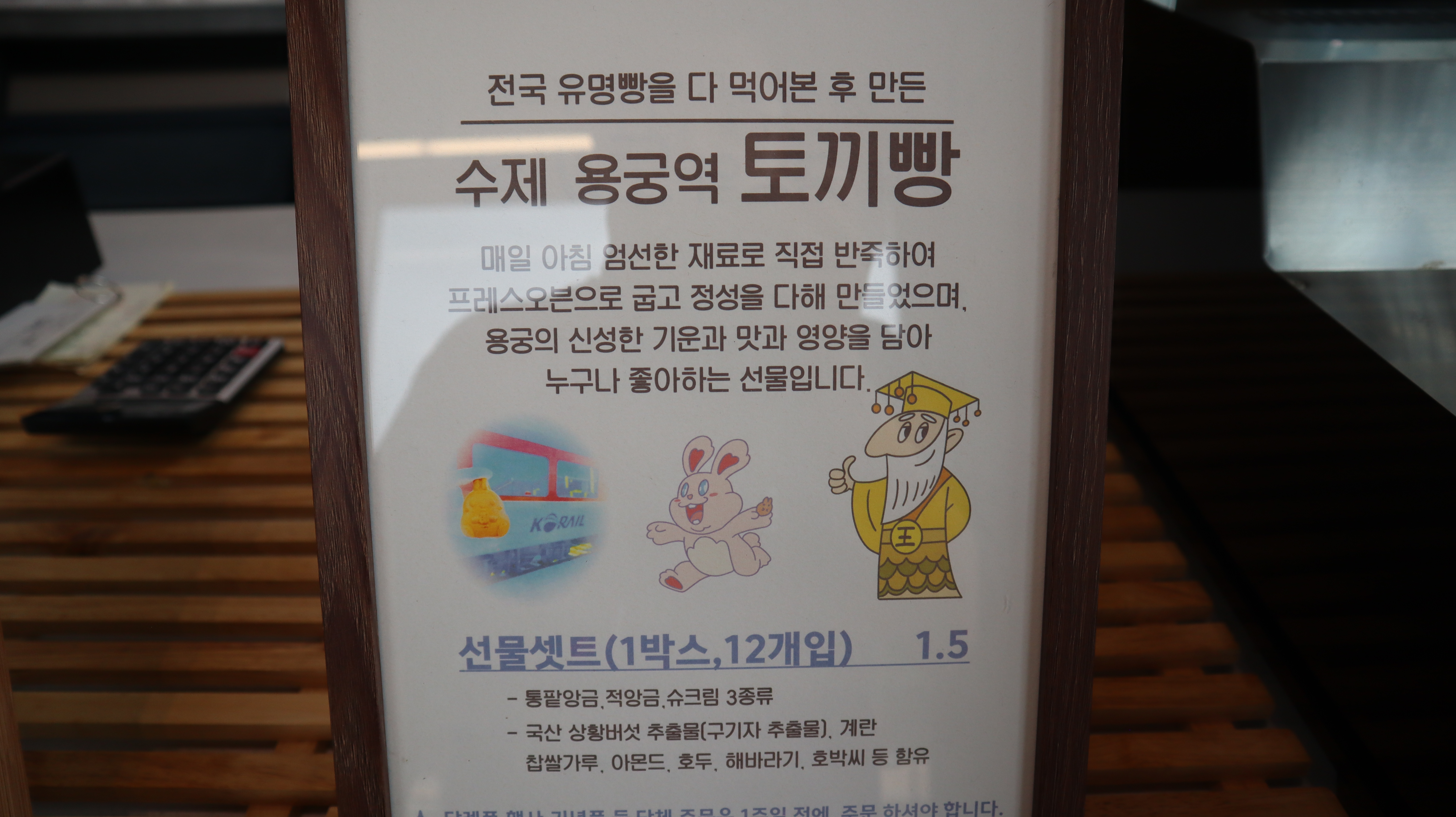용궁역에서 명물인 토끼빵도 추천합니다. 맛도 좋고 스토리도 있어서 온가족이 함께 나눠먹으면 더욱 좋습니다.