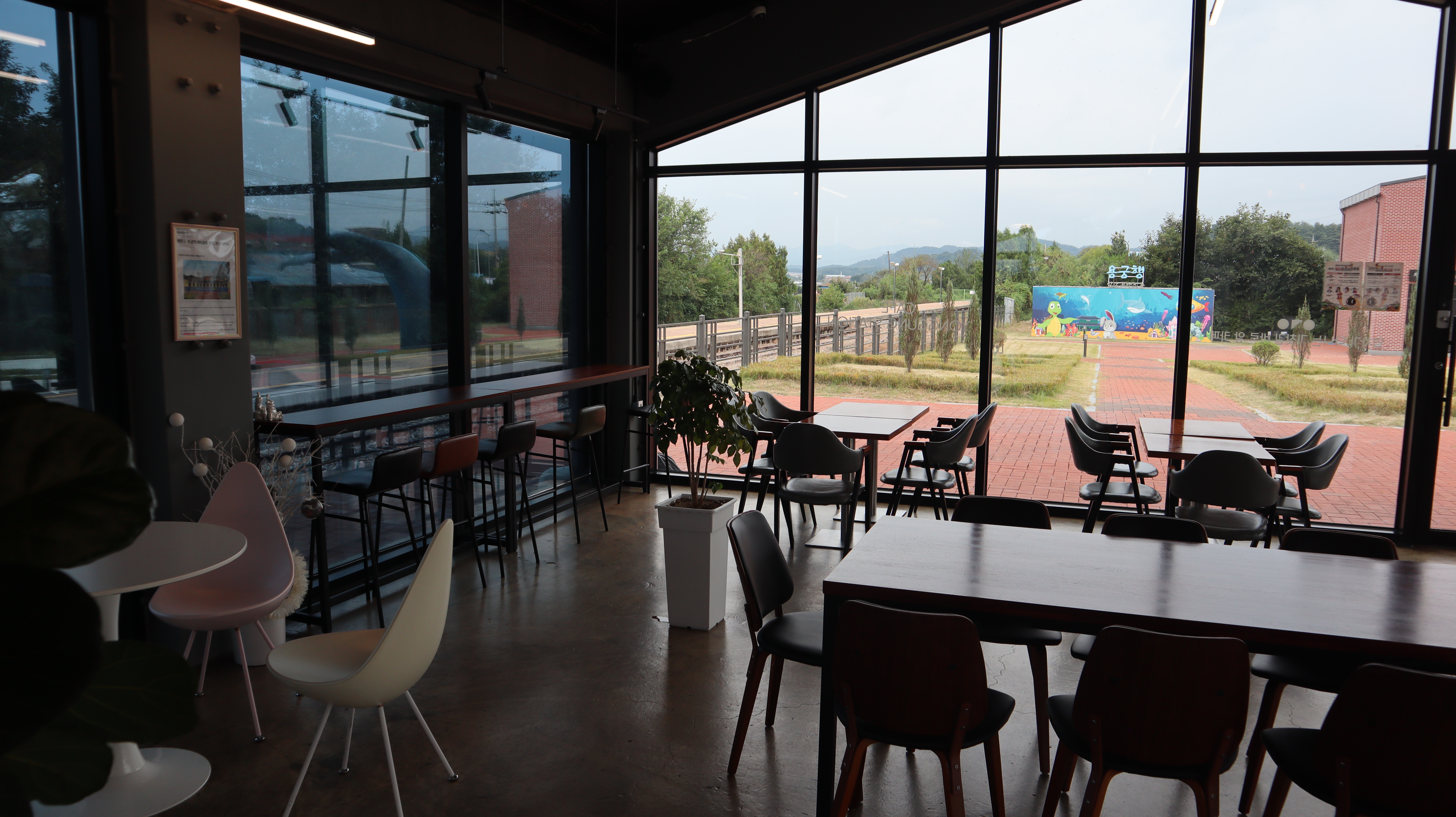 카페 용궁역의 내부 모습은 대체로 위 사진처럼 생겼는데요. 의외로 꽤 넓었고 자리 배치가 넉넉해서 담소 나누기에도 정말 좋은 공간이라는 생각이 들었습니다. 현대식 건물인데도 전체적으로 분위기 있고 고즈넉한 분위기가 있는데다가 바로 앞에 기찻길이 있어서 레트로한 느낌도 들었습니다.