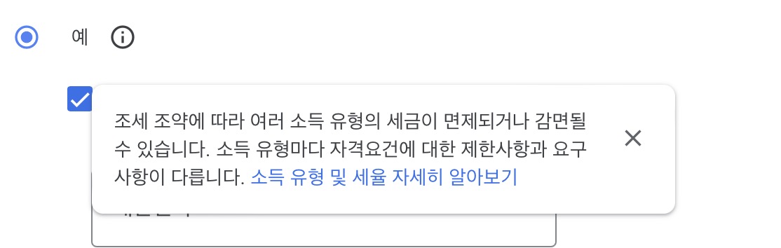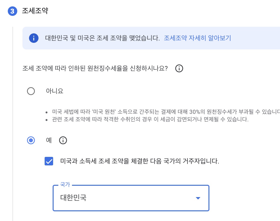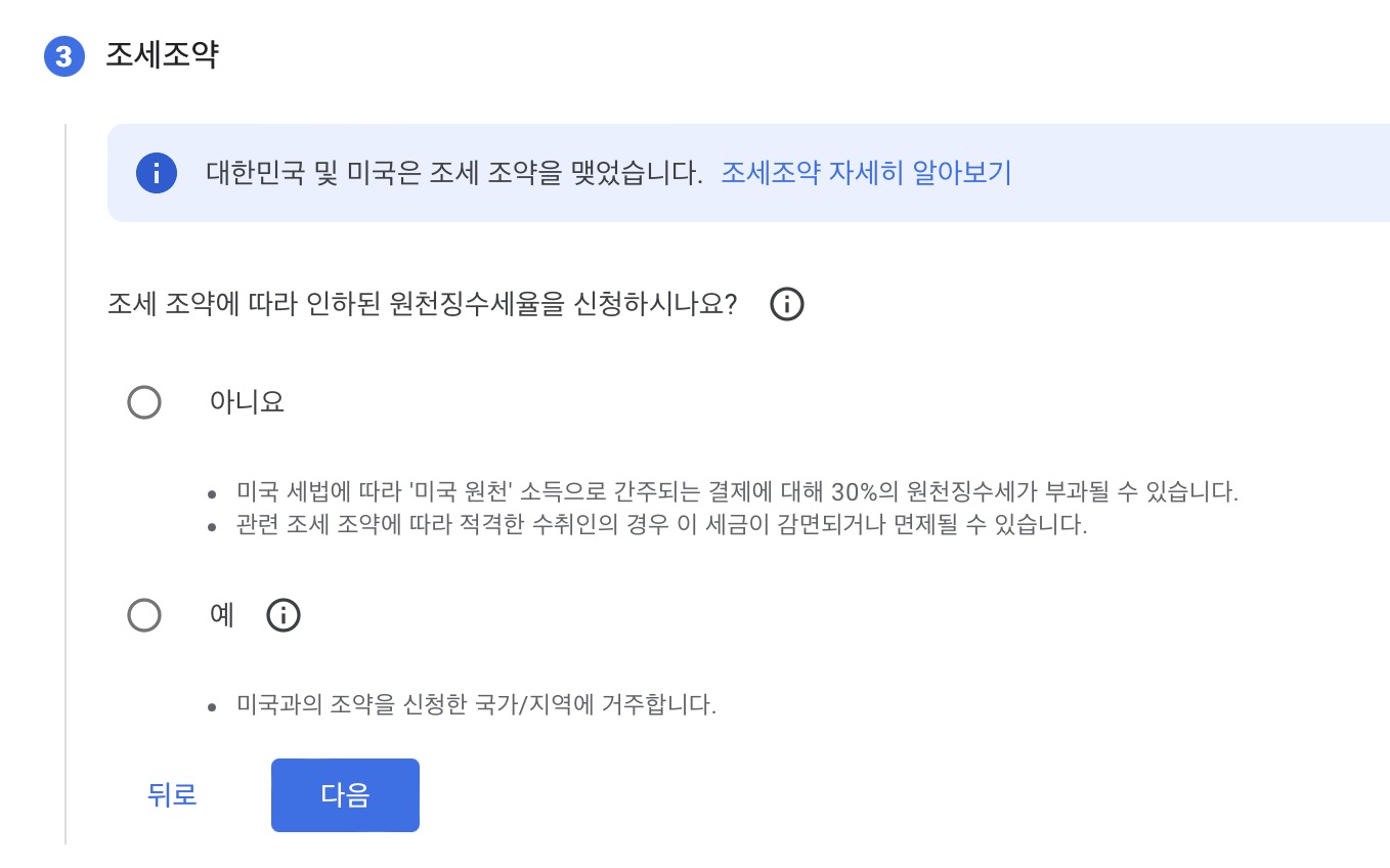 조세조약의 경우 여기에서 선택사항이 나옵니다. 아니요를 선택할 수 있고 예를 선택할 수도 있는데요.