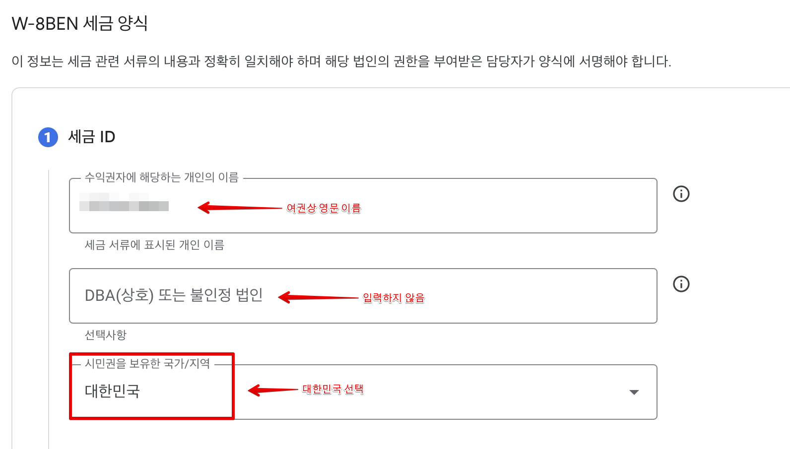 대한민국에 거주중인 내국인이라면 미국 기업과 거래를 할 때 W-8 BEN 양식을 사용하면 됩니다. 이 양식은 대표적으로 구글 애드센스(티스토리 블로그 수익 또는 유튜브 수익)나 인스타그램 및 페