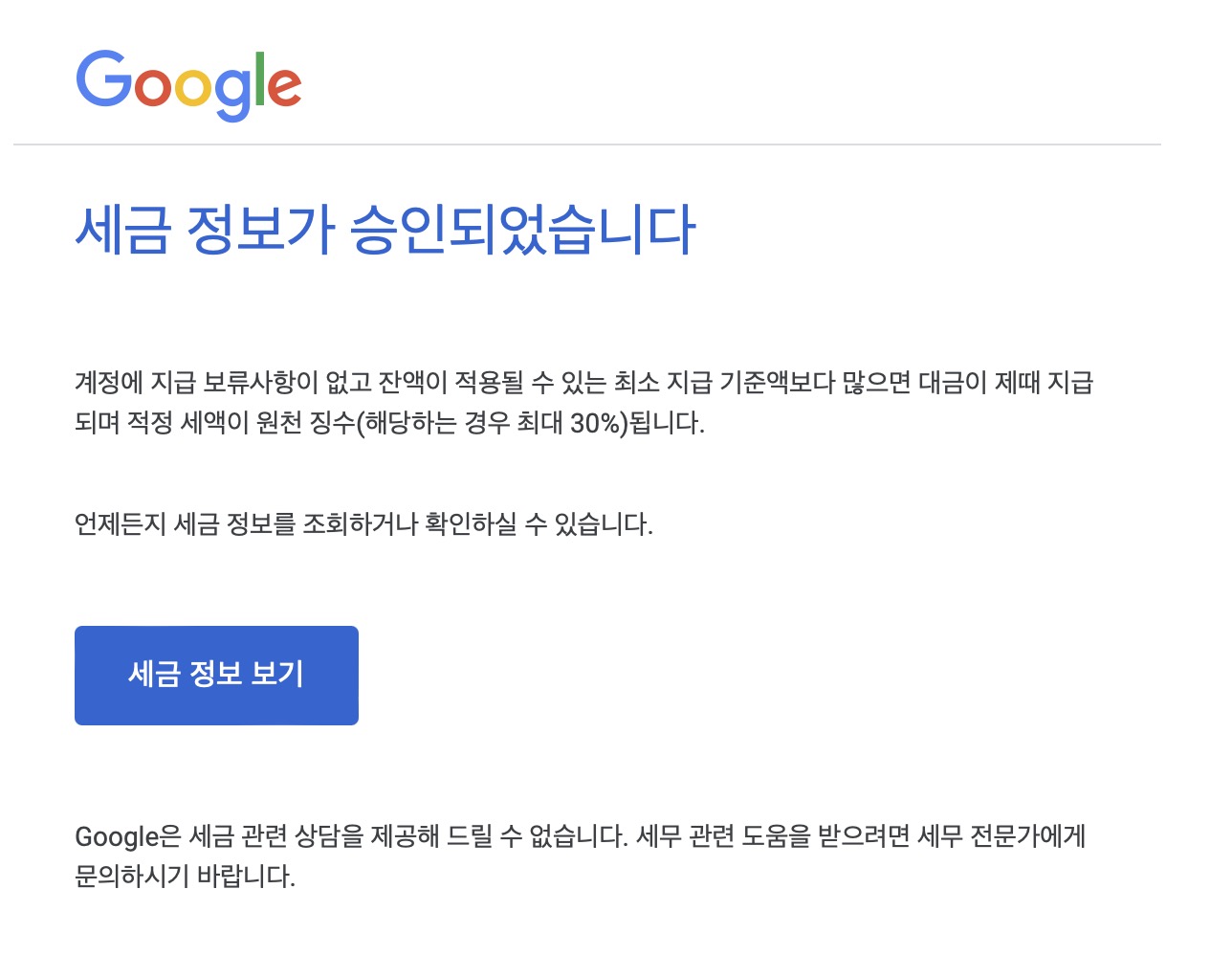 이렇게하면 위 그림처럼 세금 정보가 승인되었다는 메시지가 나타납니다.