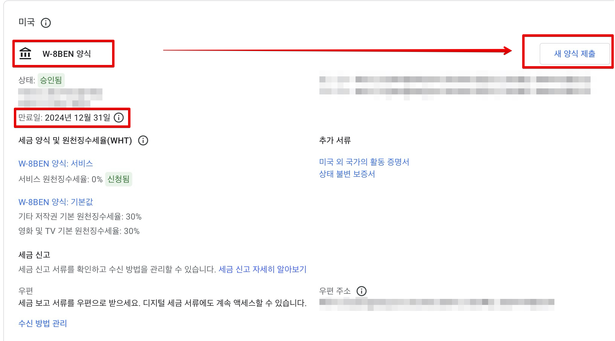 구글 애드센스 미국 세금 양식 만료에 따른 업데이트 방법(2024년)