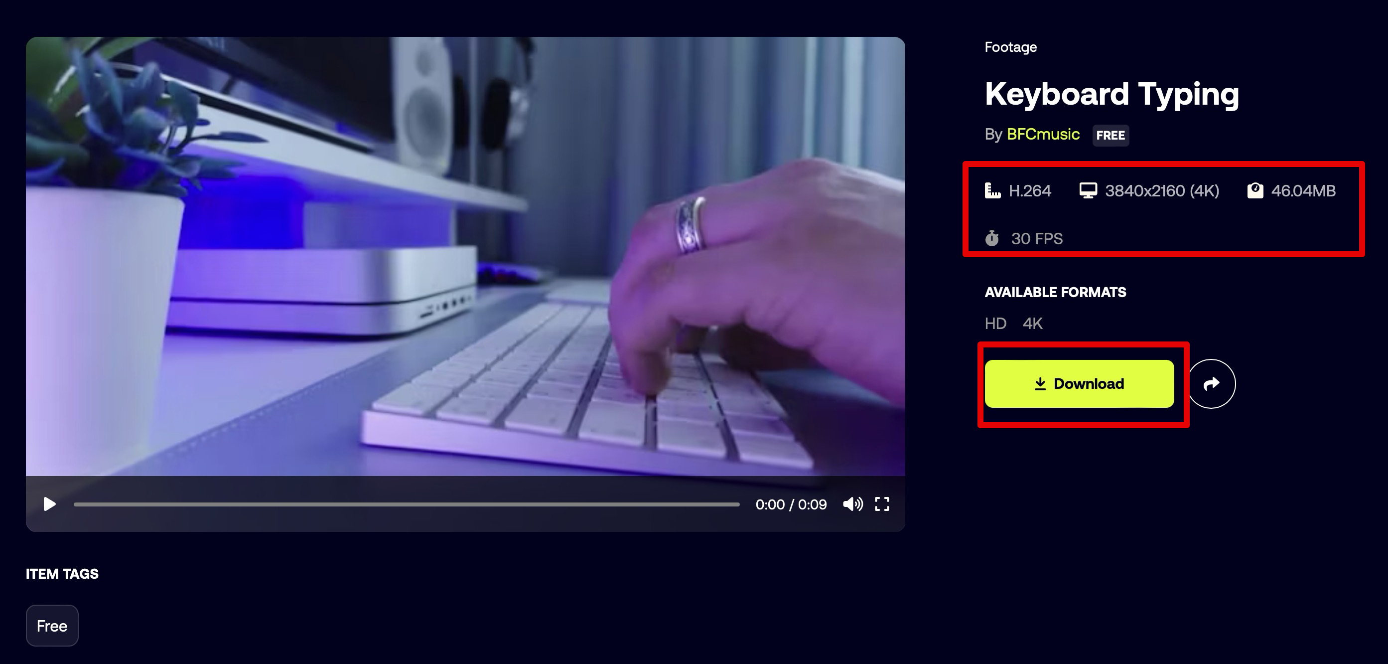 마음에 드는 영상을 찾은 후 오른쪽에 있는 [Download]버튼을 클릭해서 영상을 다운로드하면 됩니다. 위쪽에 영상에 대한 간단한 내용도 확인하세요. 위 영상은 H.264 코덱에 4K 해상도, 30프레임, 46메가 정도 되는 영상이라는걸 알려주고 있습니다.
