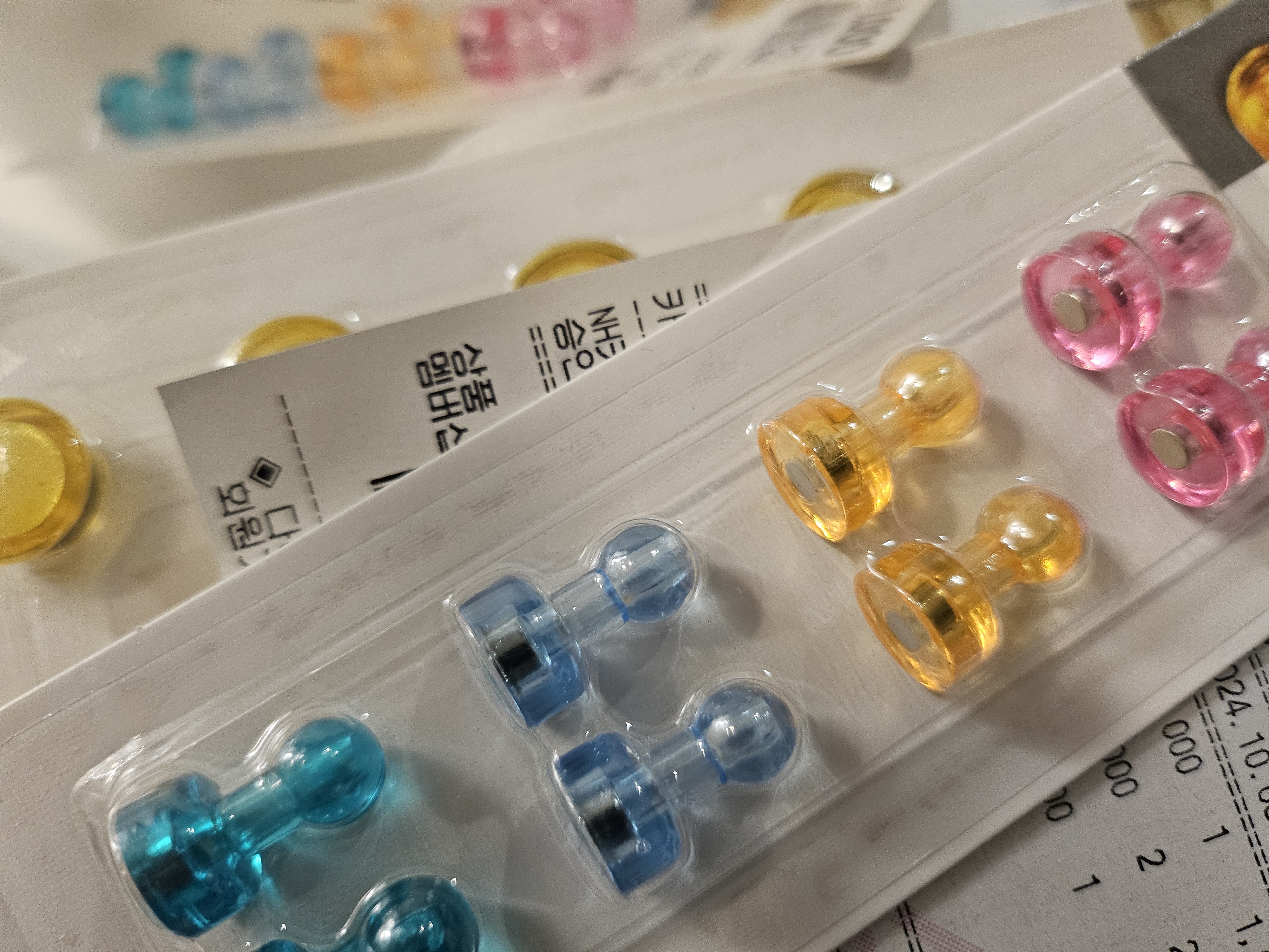 자석은 일단 어떤게 마음에 드는지 아직은 잘 몰라서 이것저것 사보았다. 개인적으로는 손잡이가 있는 자석쪽이 좀 더 마음에 들고 납작한 자석은 그렇게까지 마음에 들진 않았다. 나중에 자석을 몇 개 더 구매할 생각이다.