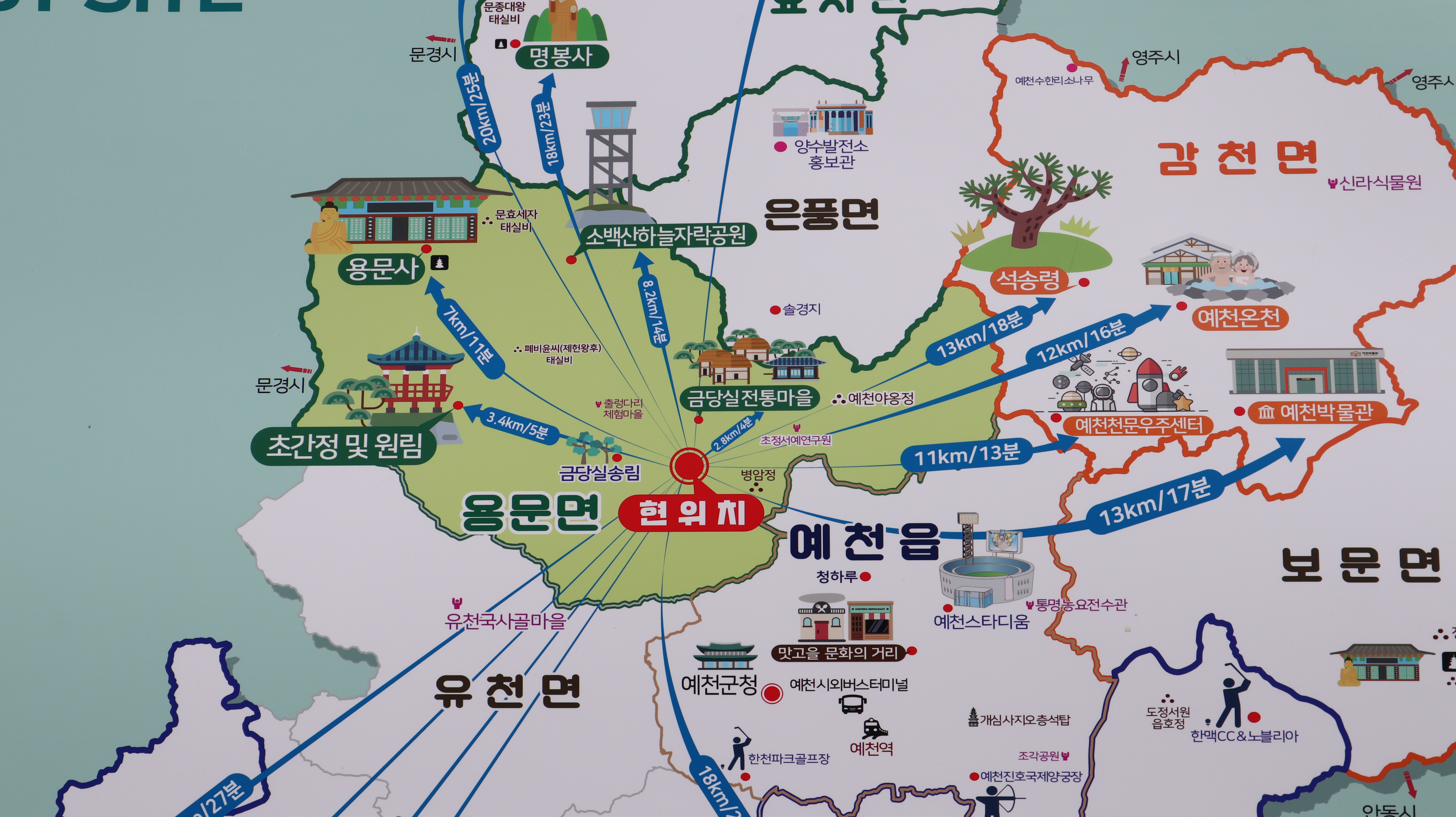 더불어서 현재 위치와 예천 8경의 모습도 확인해보세요.