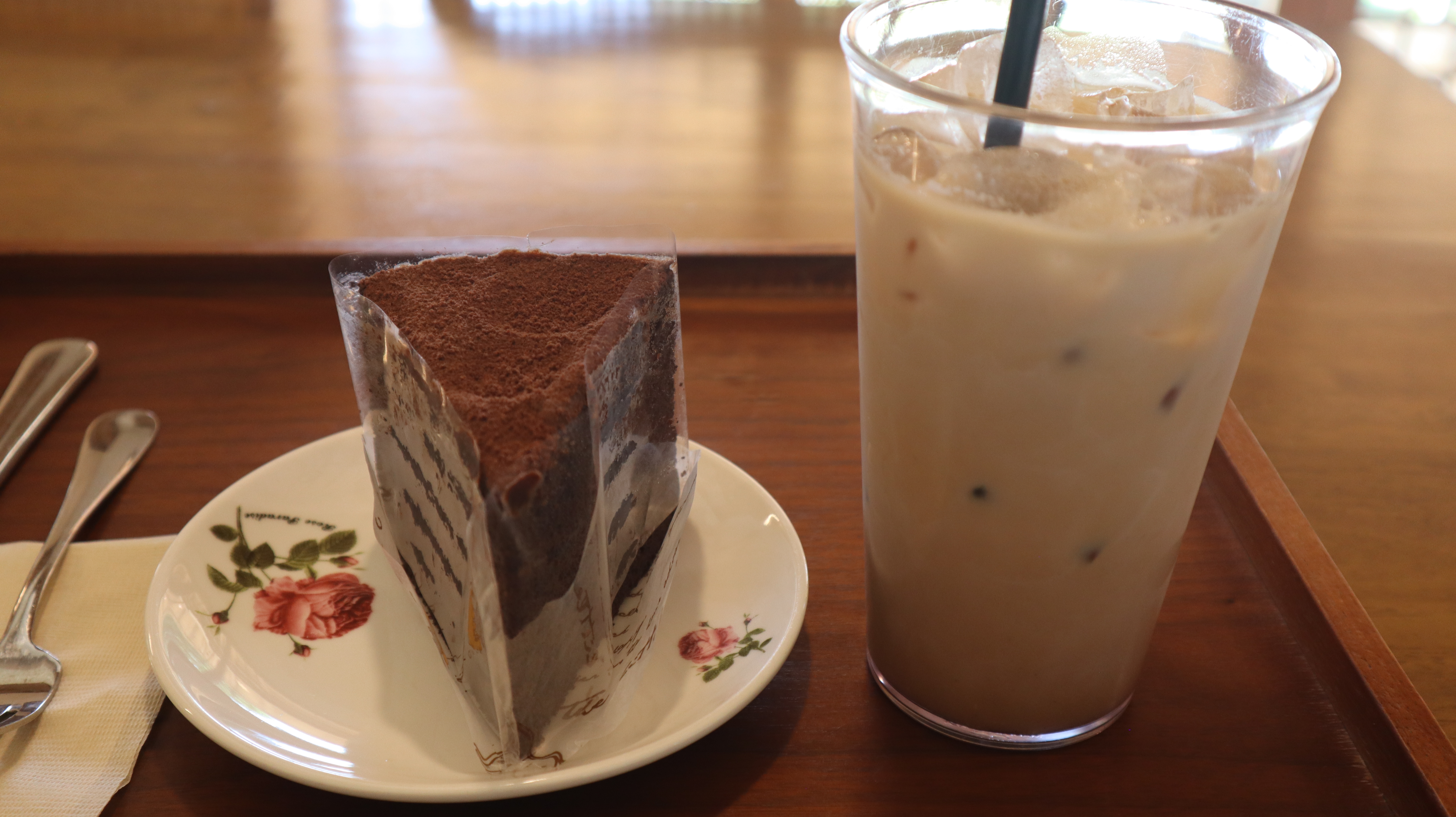 바닐라라떼와 초코케잌을 주문해보았습니다. 케잌과 함께 나오는 접시가 너무 예쁜 모습이었습니다.