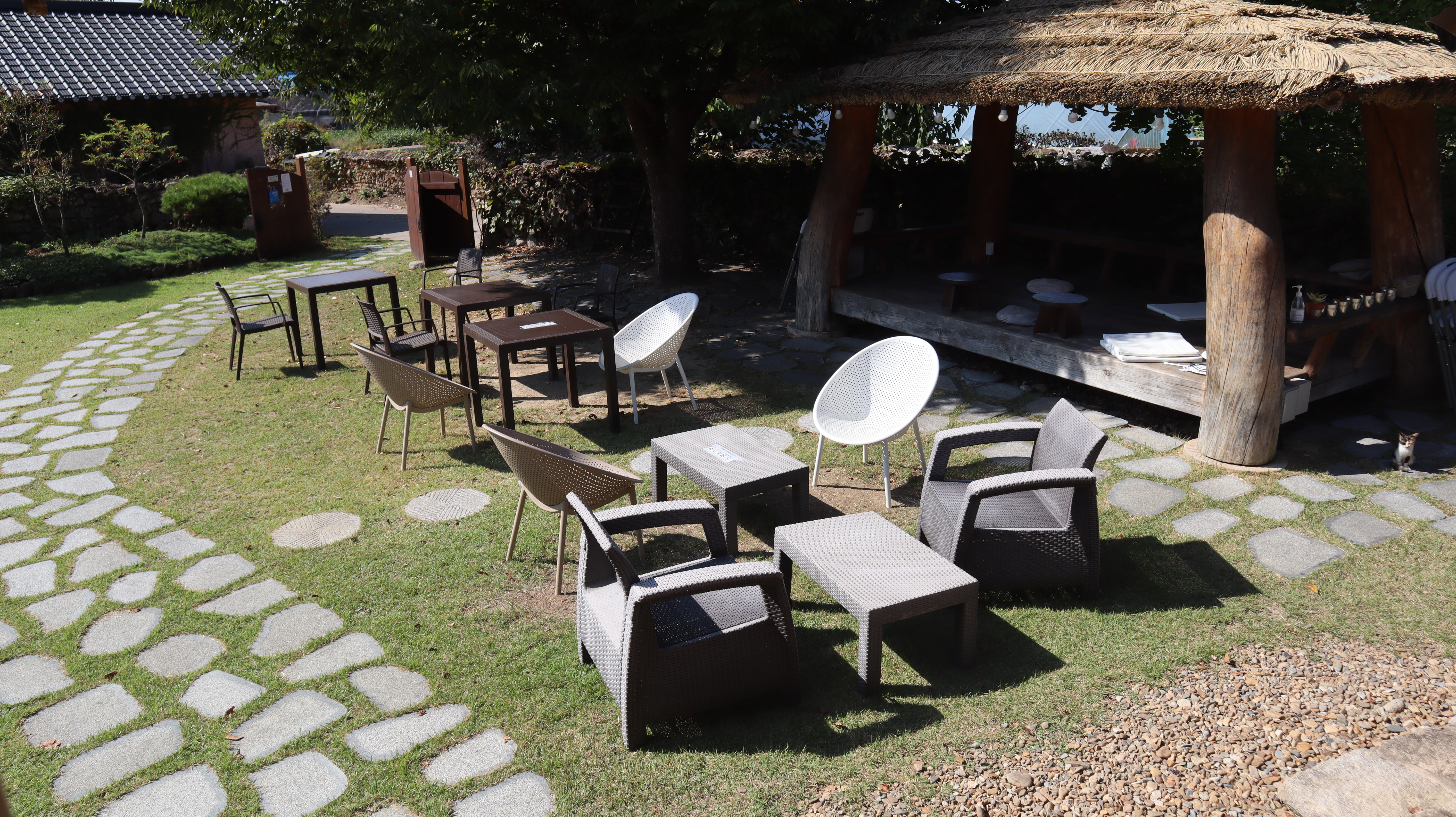 카페에서 맛있는 음료와 디저트로 요기를 하고 야외 공간을 조금 더 둘러보았습니다. 마당을 거닐며 가을의 정취를 만끽하는 것도 괜찮은 선택이었던 것 같습니다. 예천 금당마루 카페에서 특별한 디저트를 즐겨보세요. 그리고 아름다운 전통 가옥과 정원을 배경으로 인생샷을 남겨보세요.