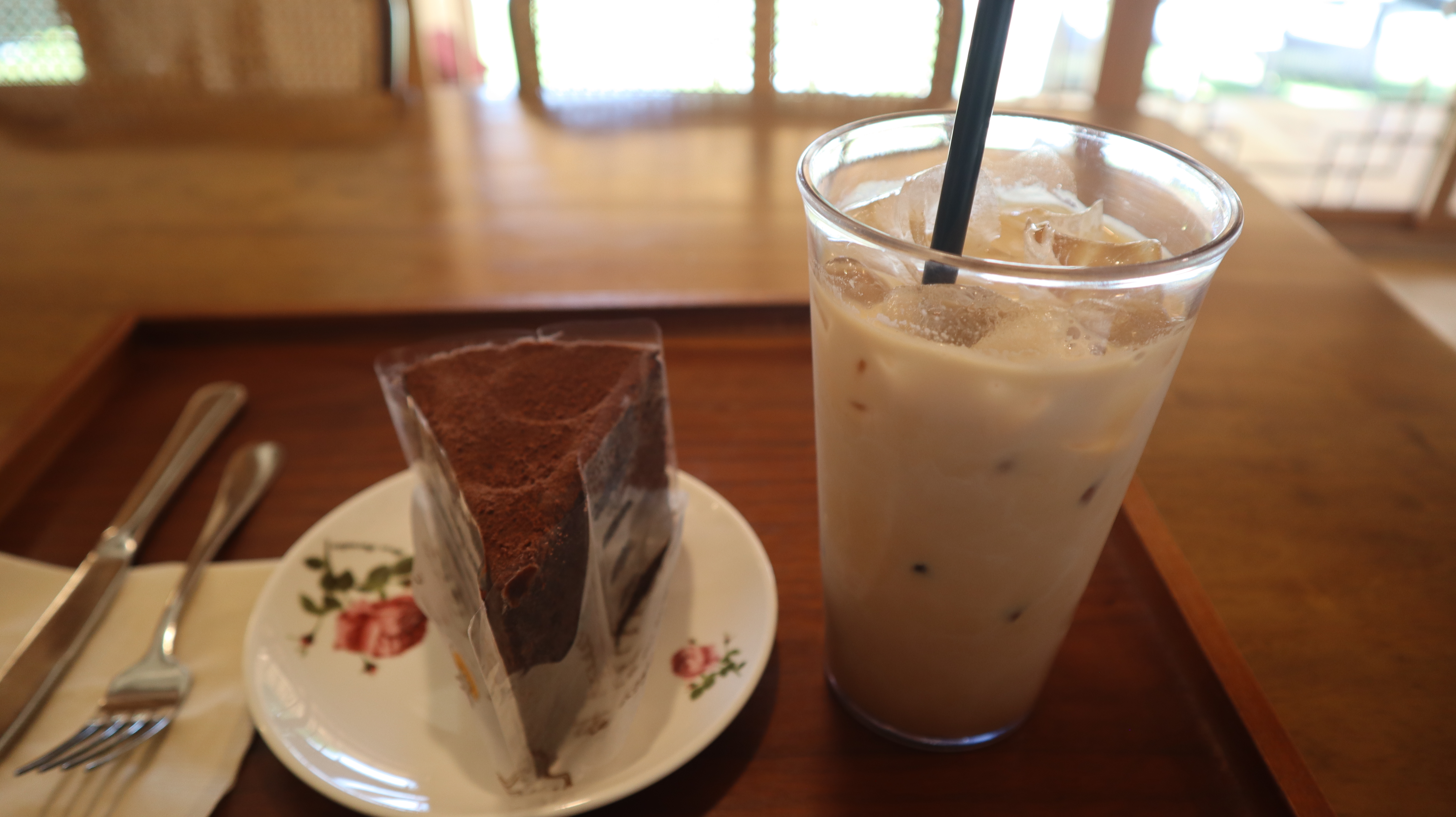 바닐라라떼와 초코케잌을 주문해보았습니다. 케잌과 함께 나오는 접시가 너무 예쁜 모습이었습니다.