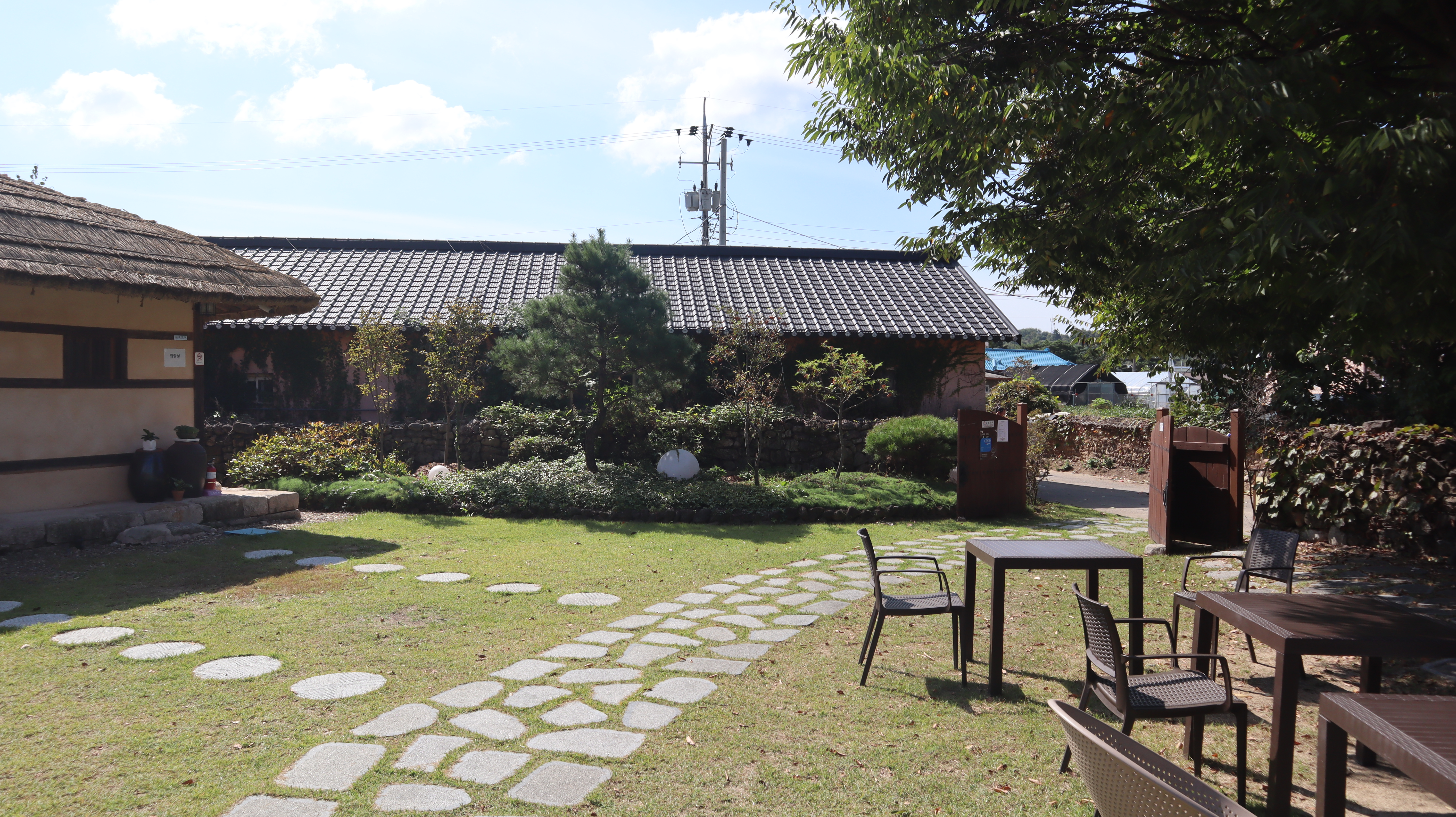 가을날의 금당마루 카페는 더욱 특별했습니다. 가을 분위기와 맑은 하늘이 마당을 가득 채우고, 솔솔 불어오는 바람은 마음까지 시원하게 해주네요. 햇살이 따스하게 내리쬐는 날에는 야외 테이블에 앉아 따뜻한 차 한 잔을 즐기며 책을 읽거나, 친구들과 담소를 나누는 것도 좋은 추억이 될 것 같습니다.