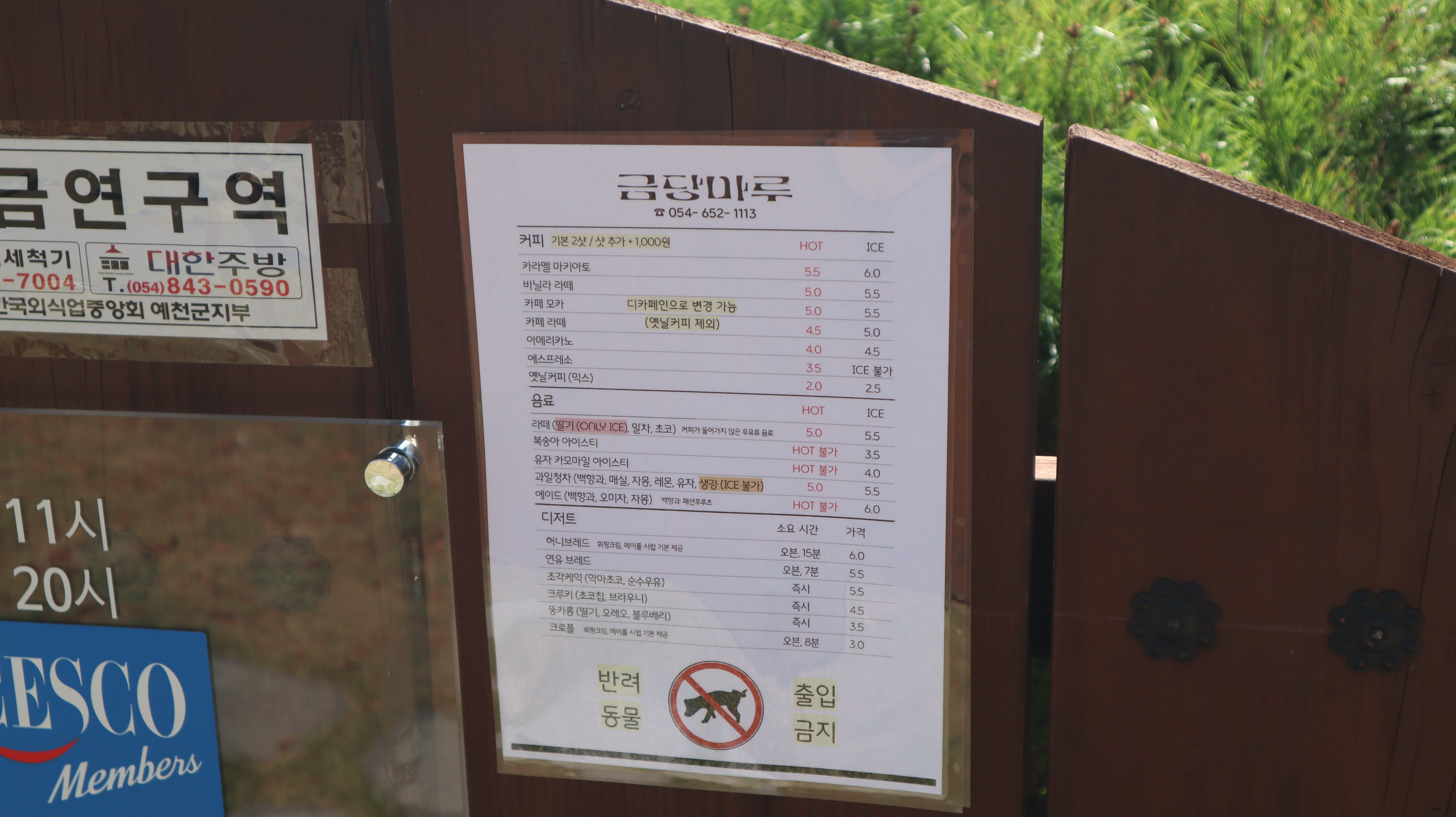 금당마루 카페 입구에 메뉴판이 추가되었습니다. 예전에는 보지 못했던 메뉴판이었는데요. 밖에서 메뉴를 확인하고 들어갈 수 있어서 메뉴 선택의 시간이 좀 더 단축될 수 있는 것 같아서 좋았습니다. 다양한 메뉴들과 디저트들이 있기 때문에 미리 체크해보면 좋을 것 같습니다.