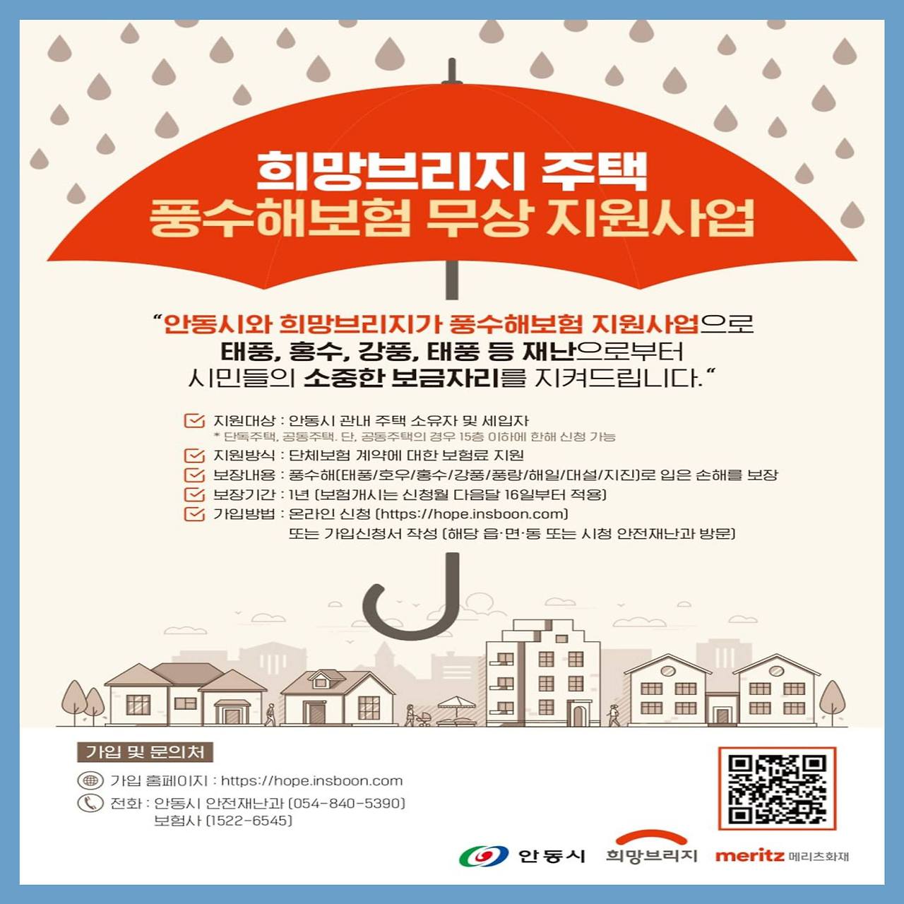 주택 소유자랑 세입자는 주택 풍수해보험 가입하세요.