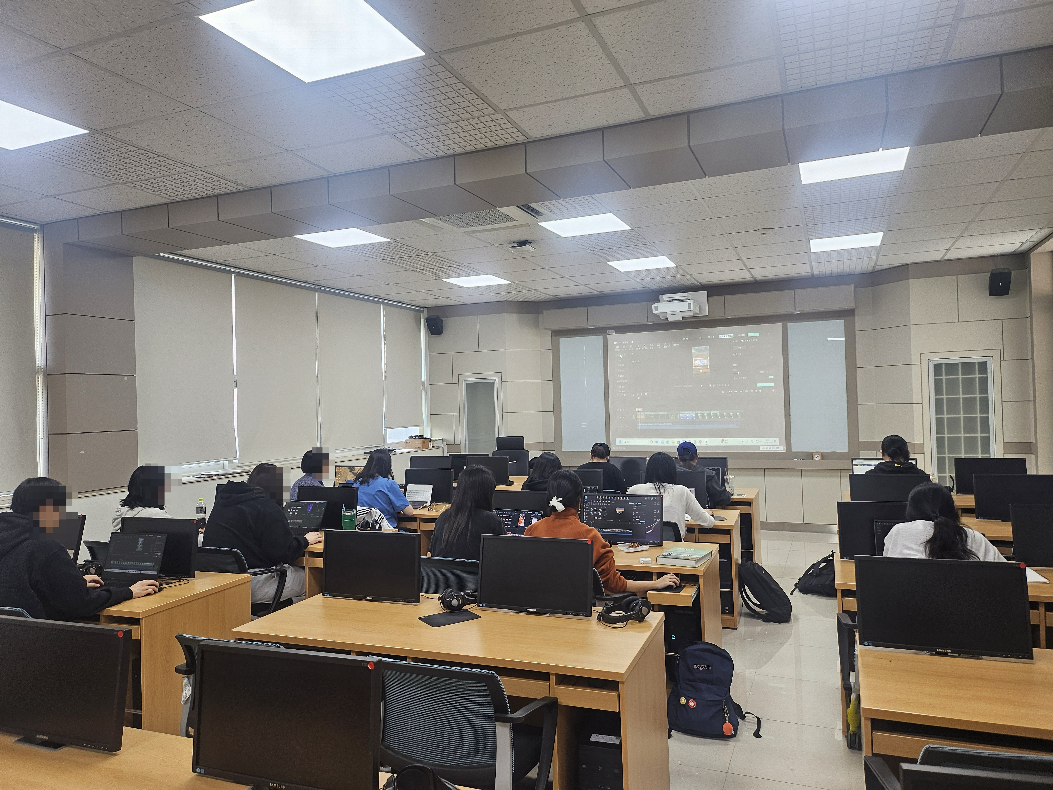 교육은 실습 위주로 편성하고 이론은 아주 핵심적인 부분들만 간단하게 말씀드렸고요. 실습 시간에는 학생분들이 만들고 있는 숏폼 동영상 제작을 위해 A to Z까지 다루면서 질문도 해결하고 1:1 케어도 해주는식으로 진행하였습니다.