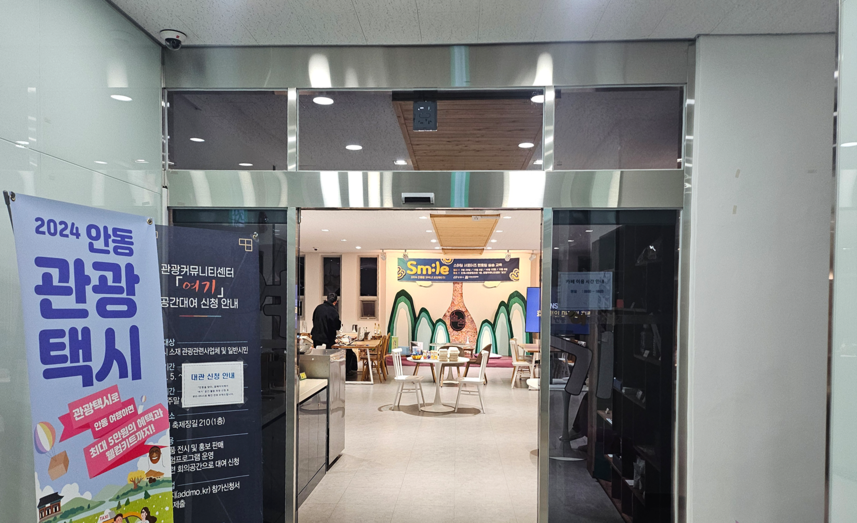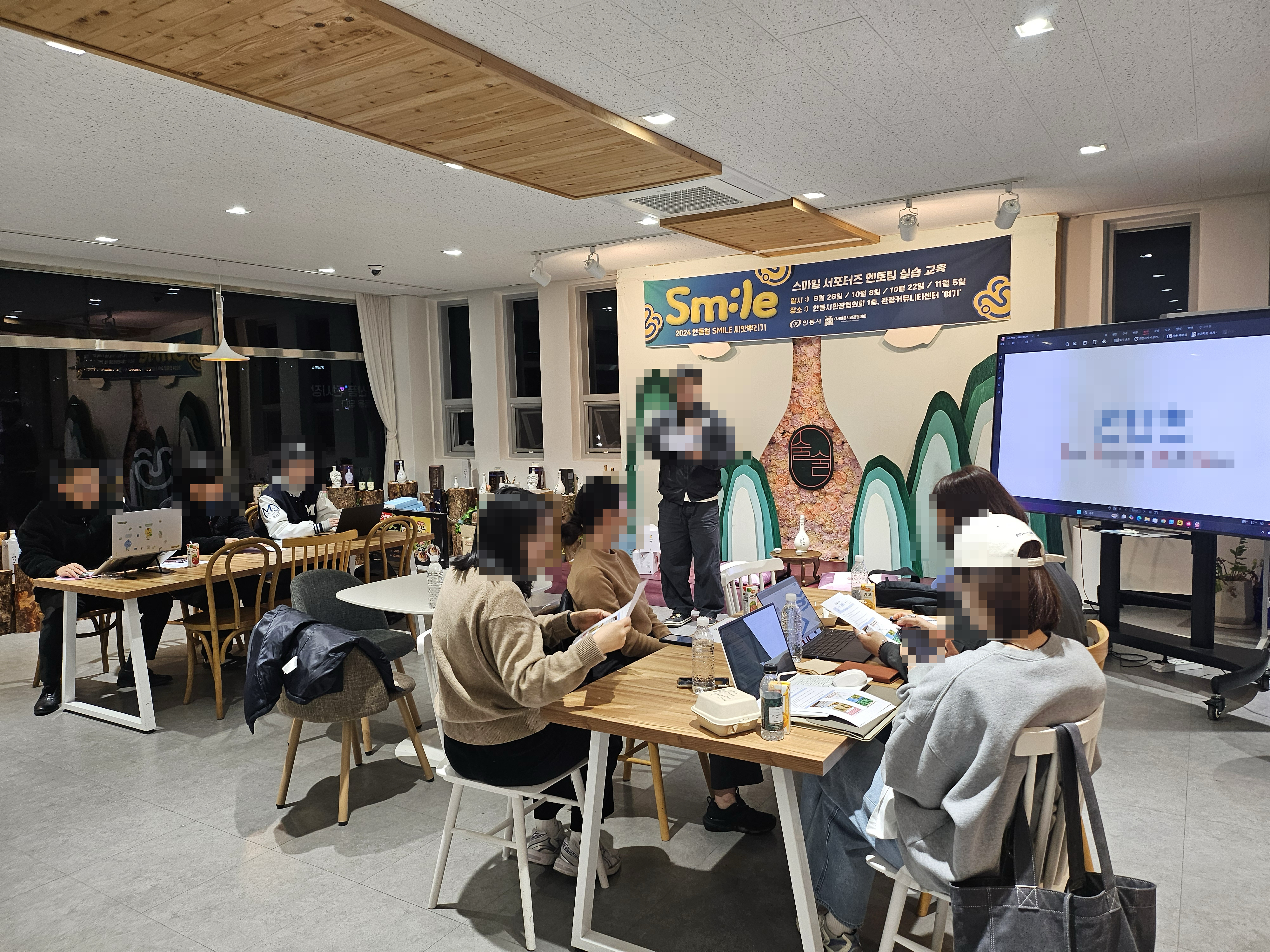안동에서 진행하는 스마일 서포터즈분들과 함께 사업체 홍보용 SNS 콘텐츠 제작 강의 다녀왔습니다. 강의 장소는 안동탈춤공원 옆에 있는 관광안내소 '여기'라는 곳이었는데요. 소규모로 회의도 하고 스터디 같은걸 하기에 좋은 분위기로 되어 있었습니다.