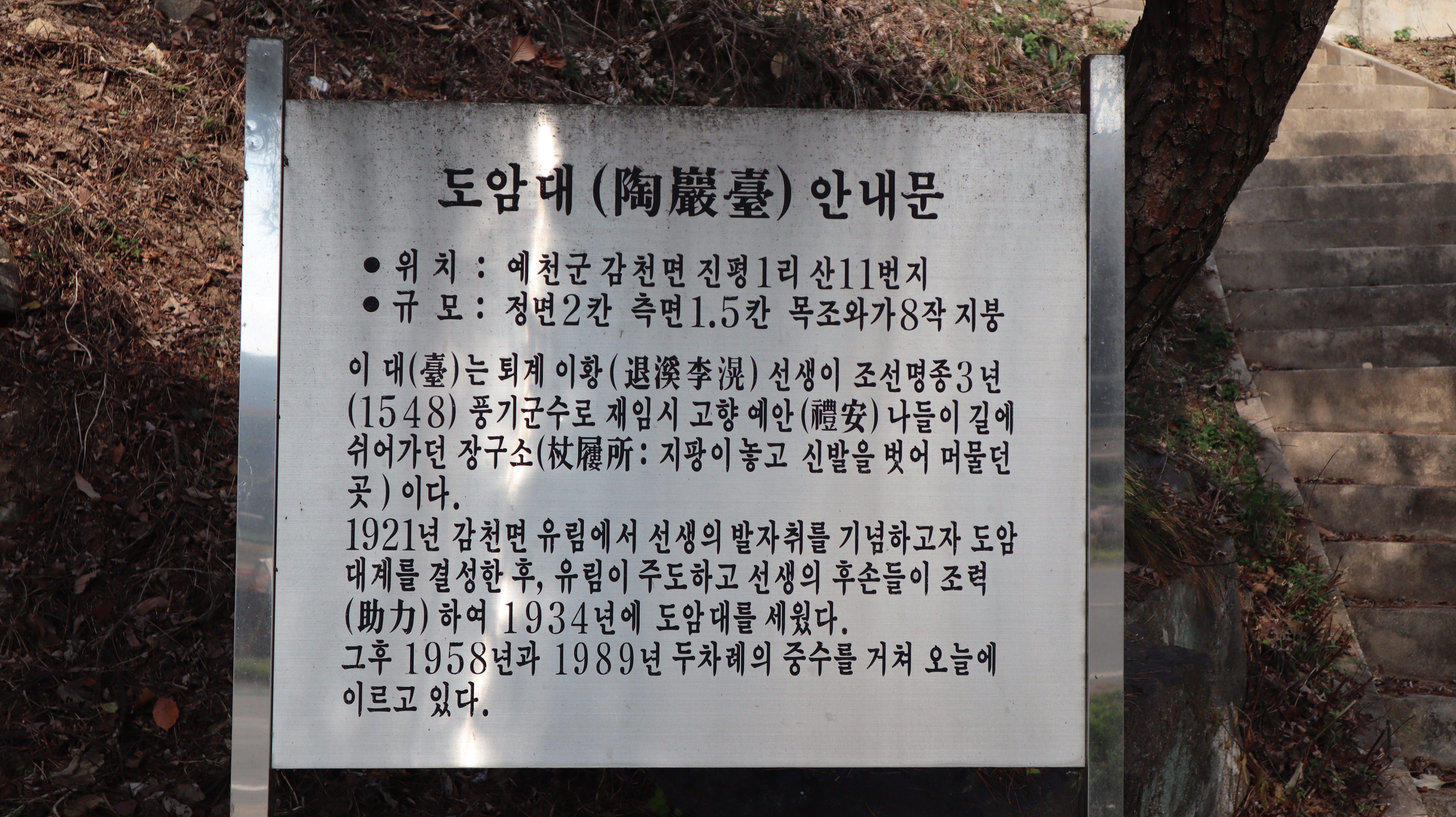 도암대는 조선 시대 유학자 퇴계 이황 선생이 자주 찾아와 학문을 연구하고 사색했던 곳입니다. 퇴계 선생이 이곳에서 바라보았을 풍경은 어떠했을까 상상하며 도암대를 둘러보았습니다.