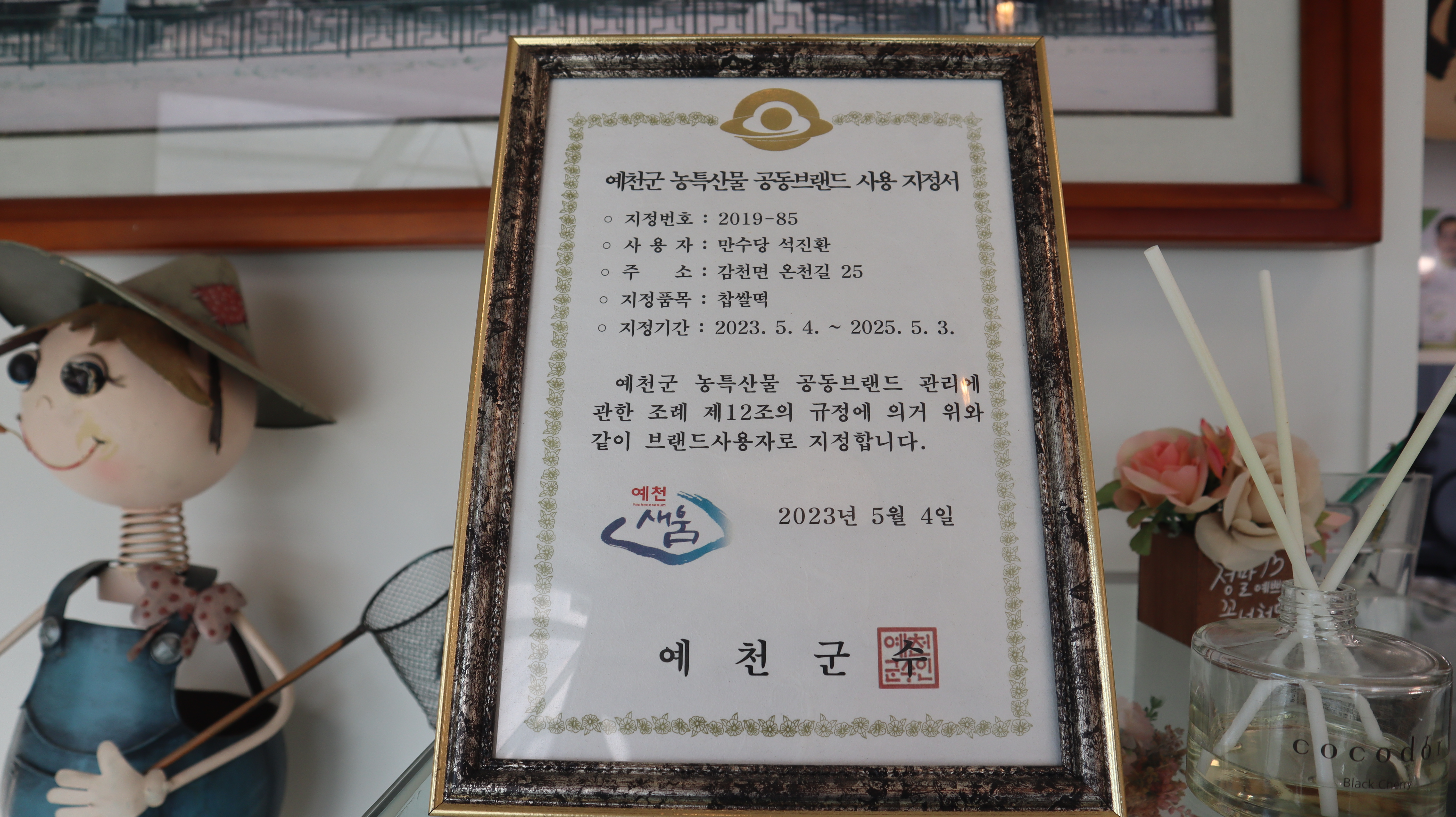 예천군 농특산물 공동브랜드 사용 지정으로서 예천군과 함께하는 만수당입니다.