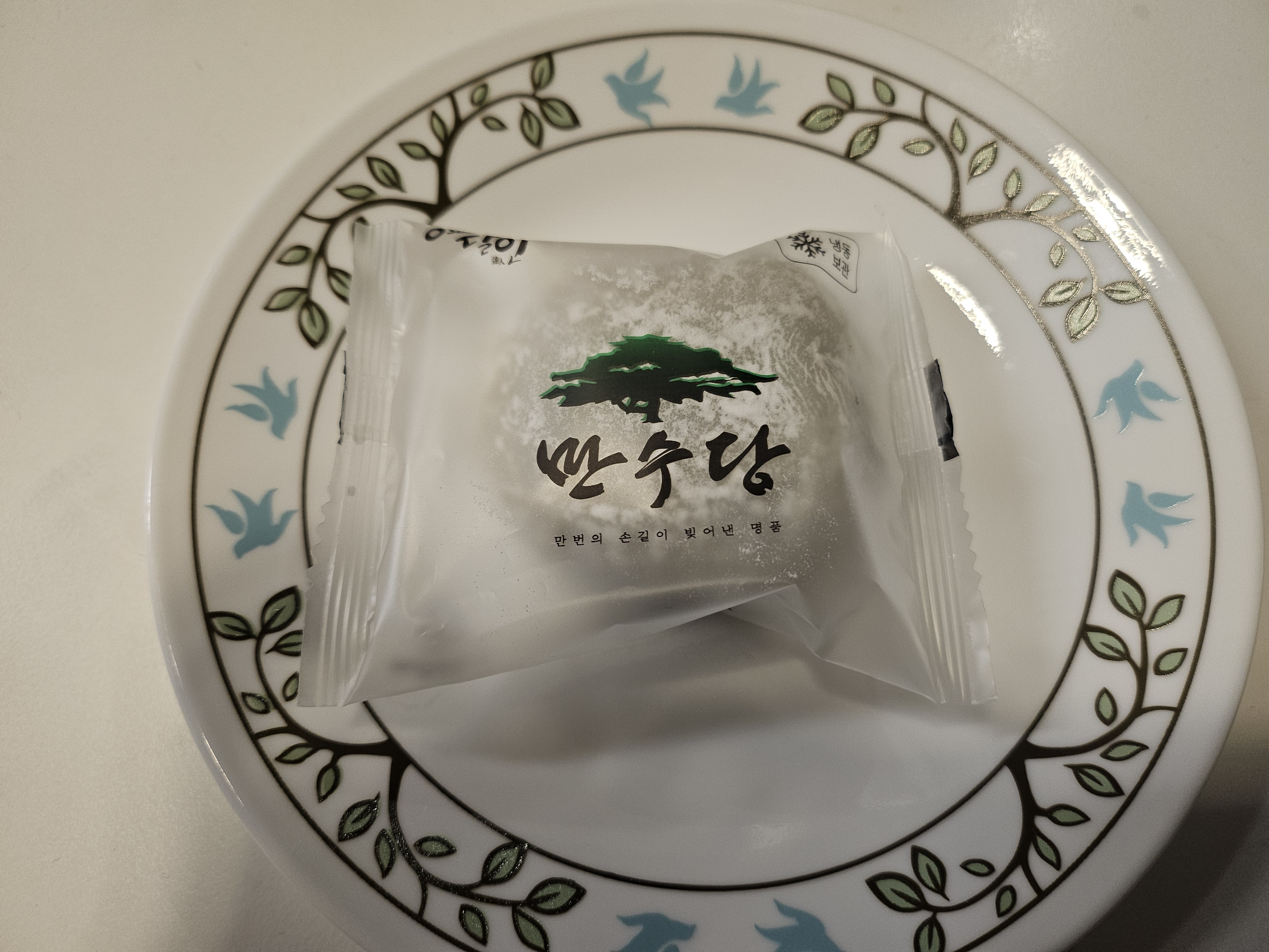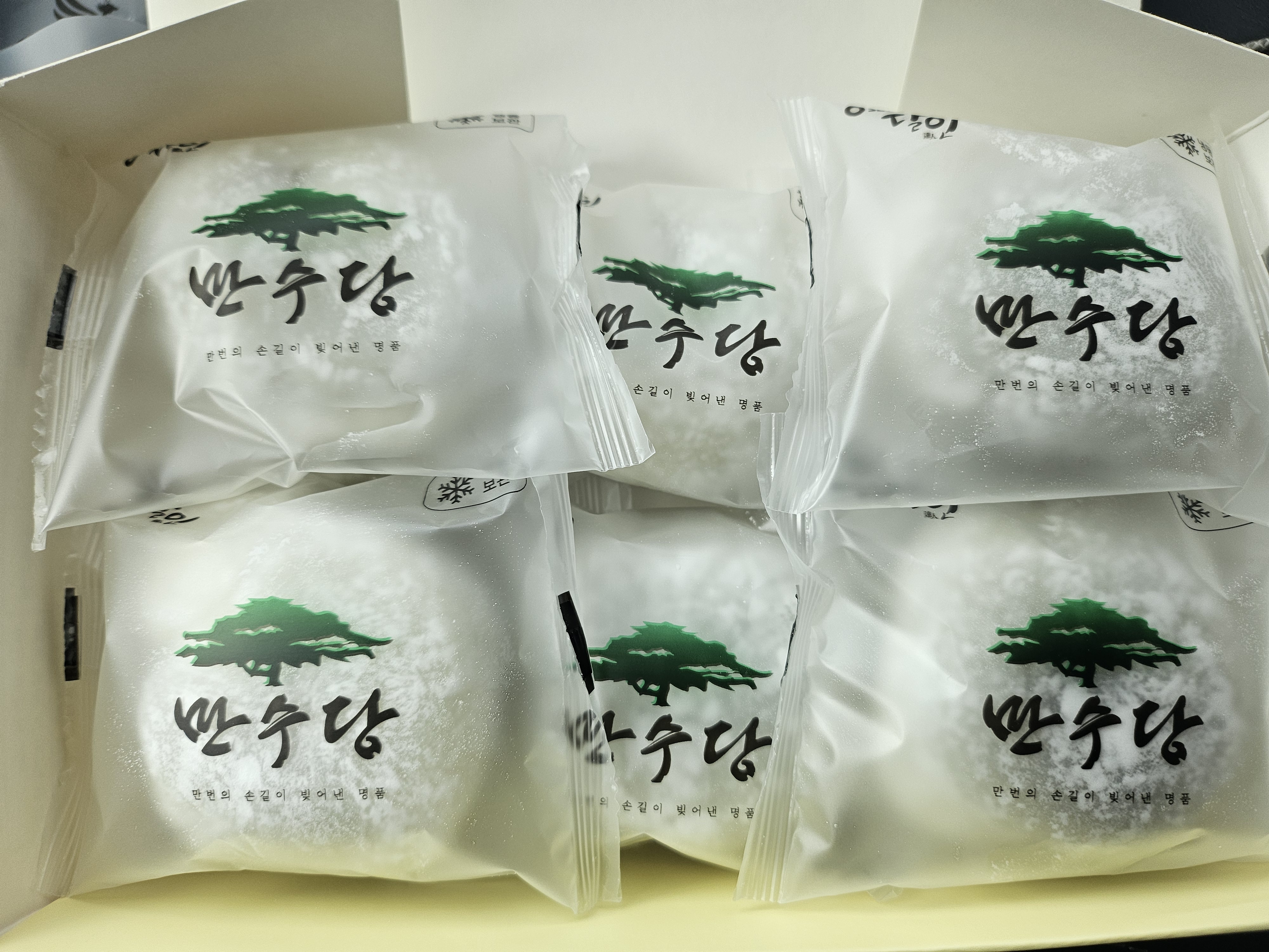 약한 노란색으로 예쁜 그림들이 있는 만수당 찹살떡 상자입니다. 하루이틀 내에는 실온보관 가능하다고 하며 나중에 드실거라면 냉동보관해야한다고 합니다.