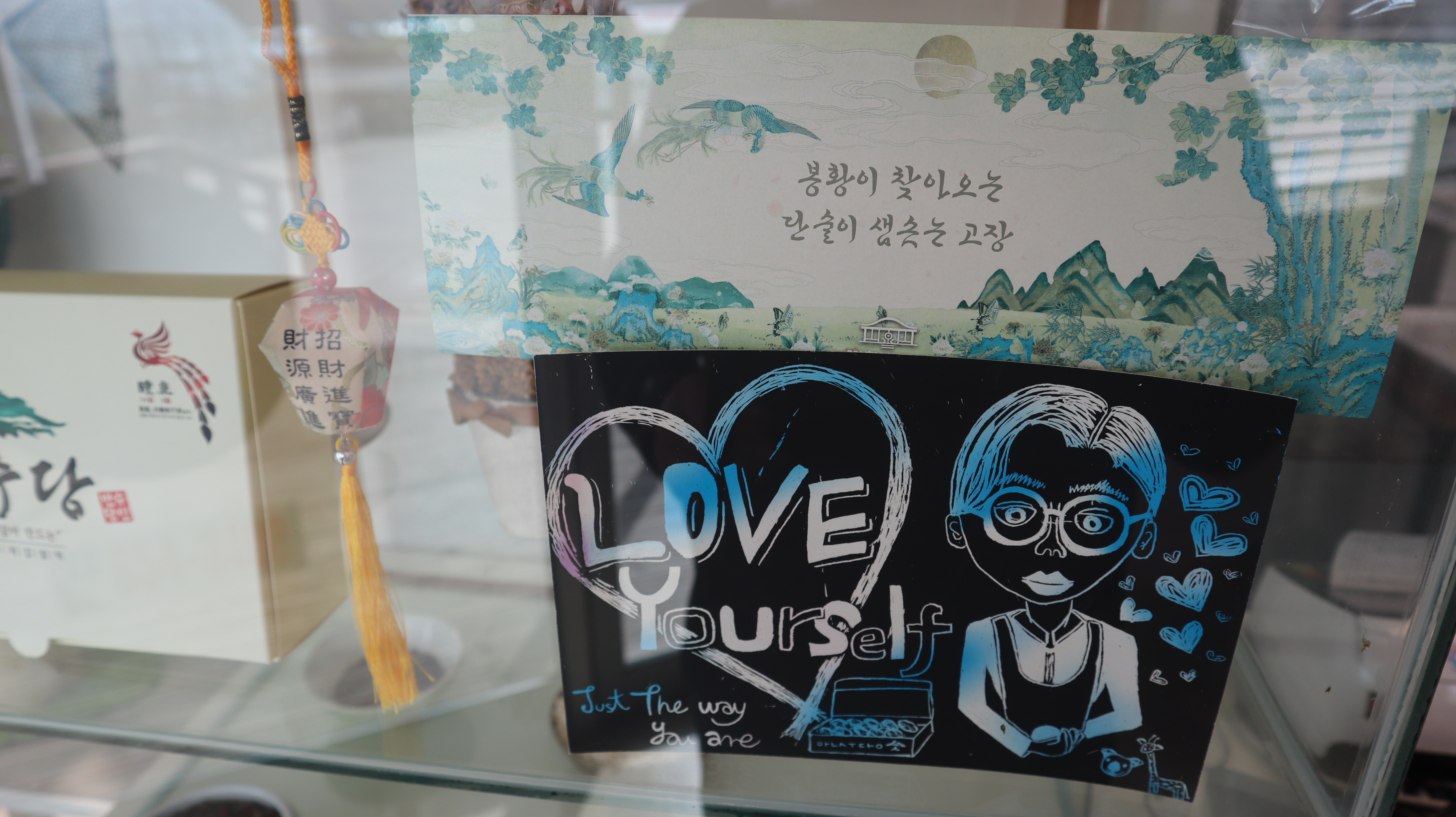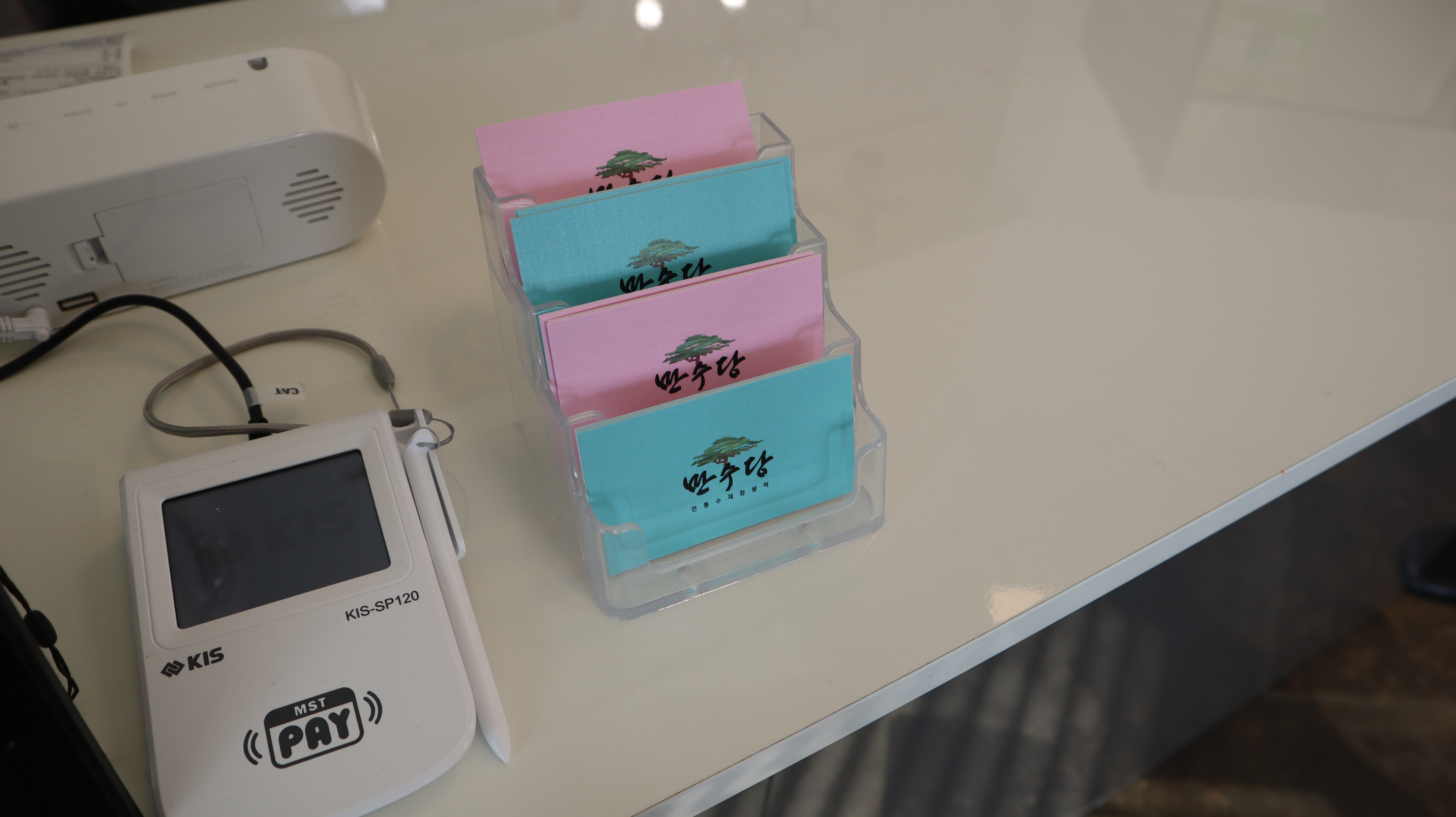 카운터쪽 쇼케이스에서 만수당 관련된 몇 가지 전시품을 볼 수 있습니다.
