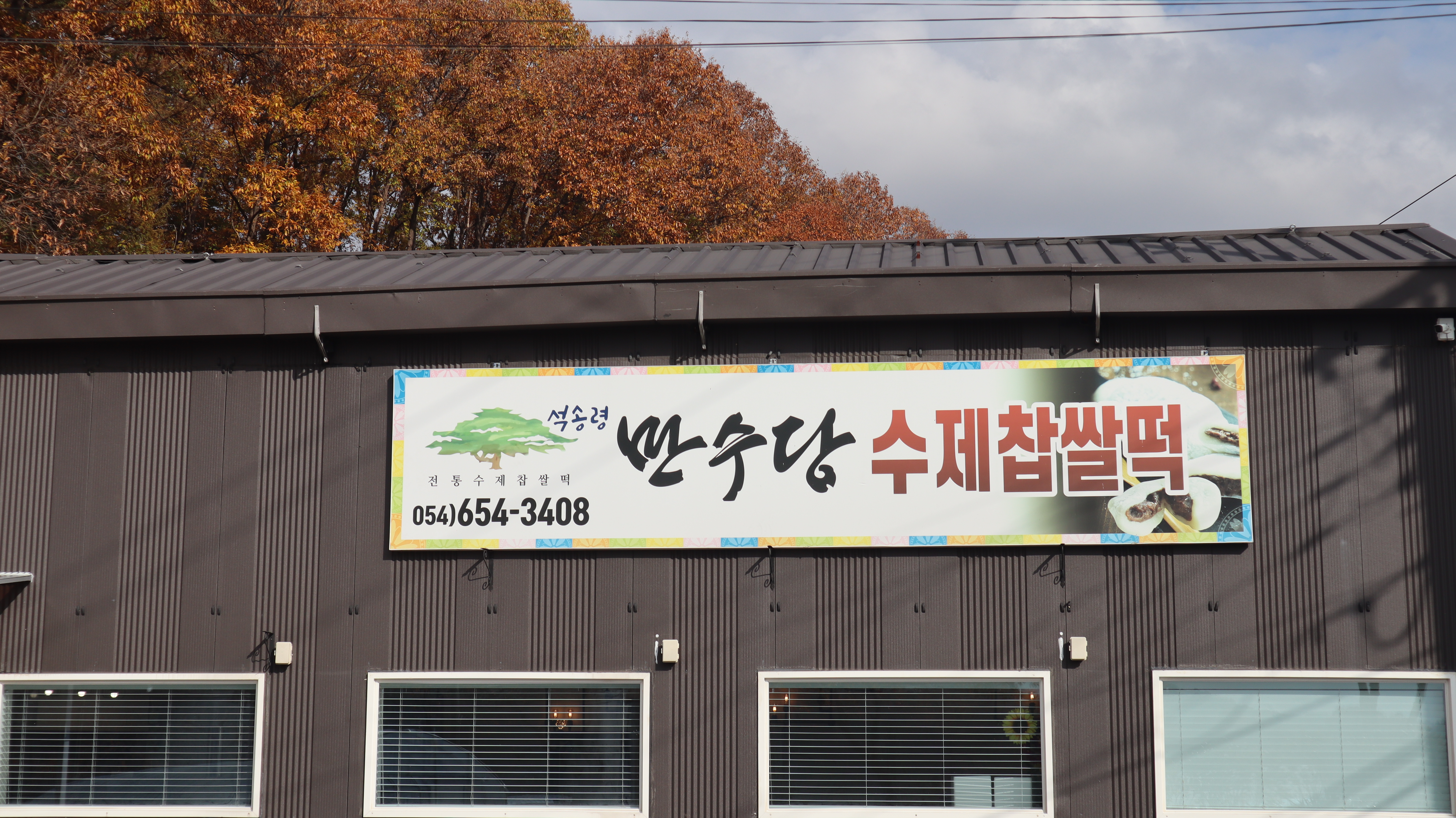 새롭게 옮긴 자리입니다. 간판은 예전 그대로였던 것 같은 기억이 있습니다. 예전에 석송령 쪽에 가게가 있었기 때문에 간판에도 여전히 석송령 그림이 있네요. 전통수제찹쌀떡으로 젊은분들을 포함해서 연세 있으신 어르신들까지... 남녀노소 누구나 좋아하는 찹살떡 제품입니다.