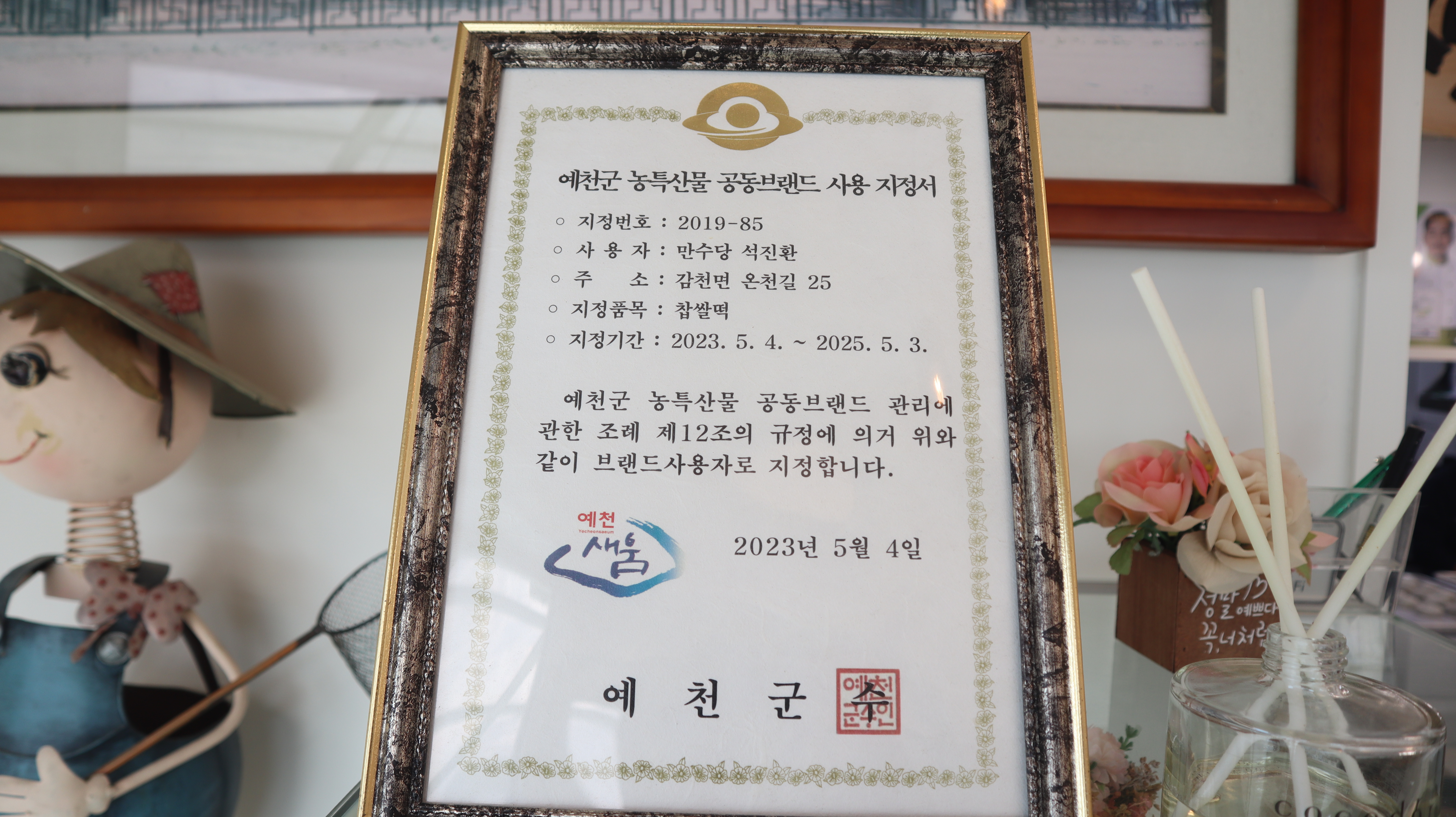 예천군 농특산물 공동브랜드 사용 지정으로서 예천군과 함께하는 만수당입니다.