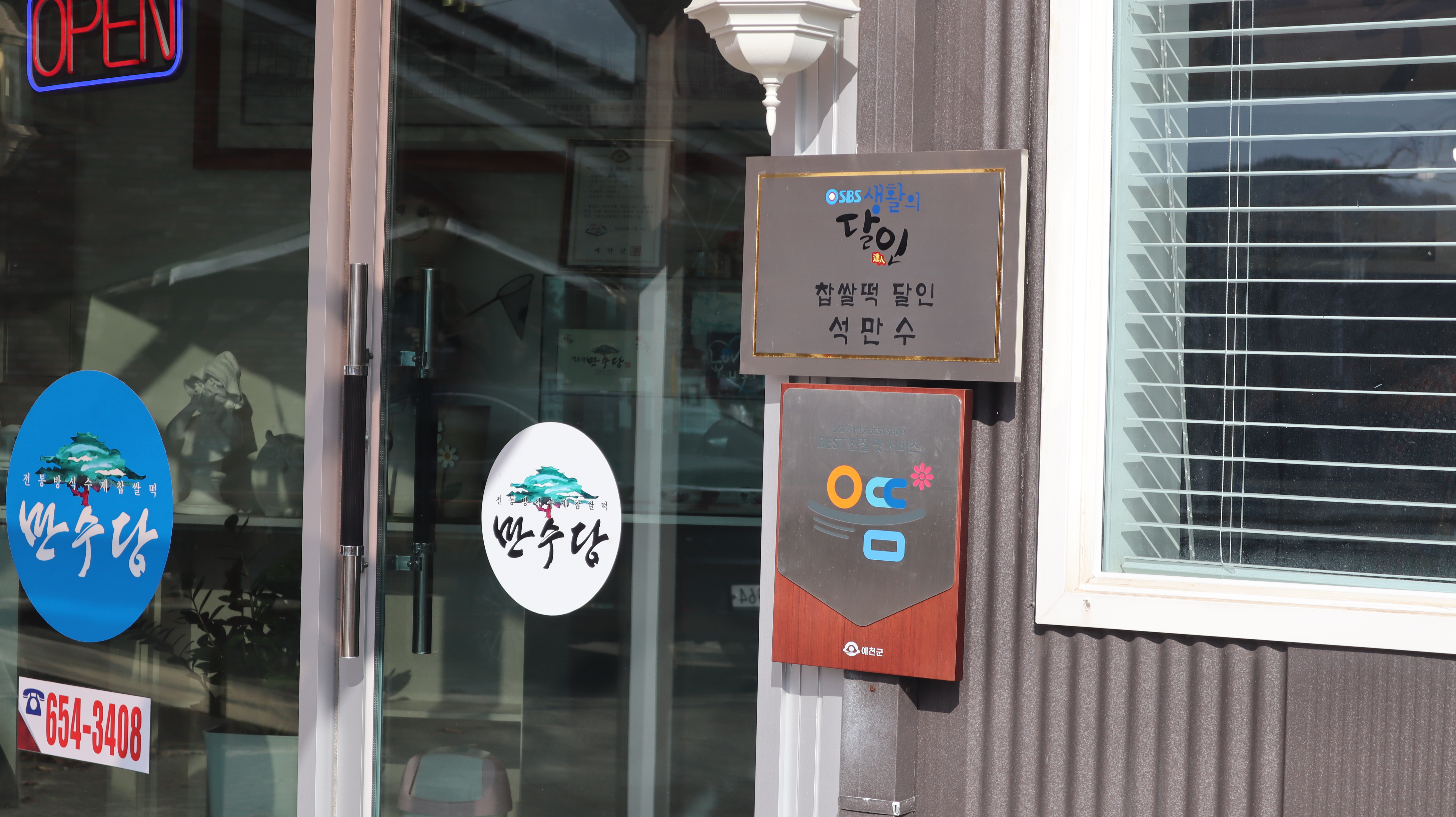 새롭게 옮긴 자리입니다. 간판은 예전 그대로였던 것 같은 기억이 있습니다. 예전에 석송령 쪽에 가게가 있었기 때문에 간판에도 여전히 석송령 그림이 있네요. 전통수제찹쌀떡으로 젊은분들을 포함해서 연세 있으신 어르신들까지... 남녀노소 누구나 좋아하는 찹살떡 제품입니다.