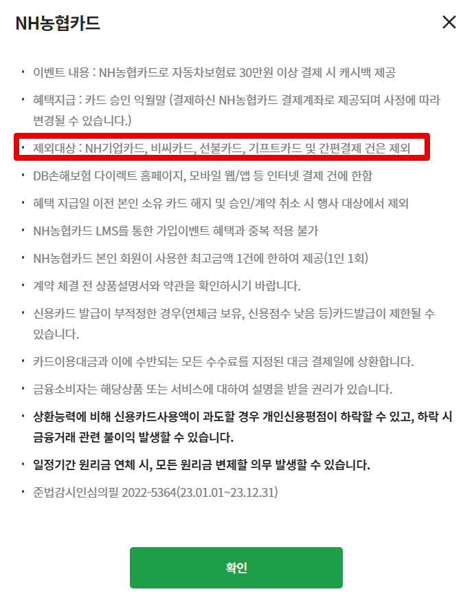 사용중인 NH농협카드의 경우, 기업용 카드로는 할인혜택이 없다고 나와있었기 때문에 개인카드로 결제하였습니다.