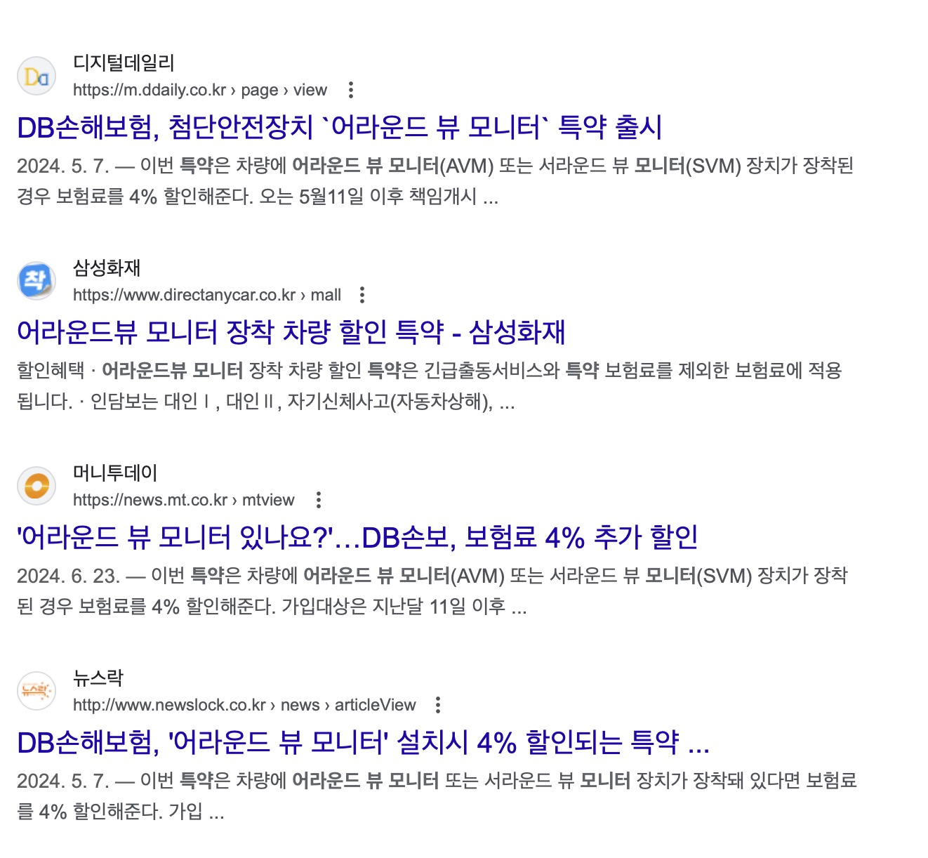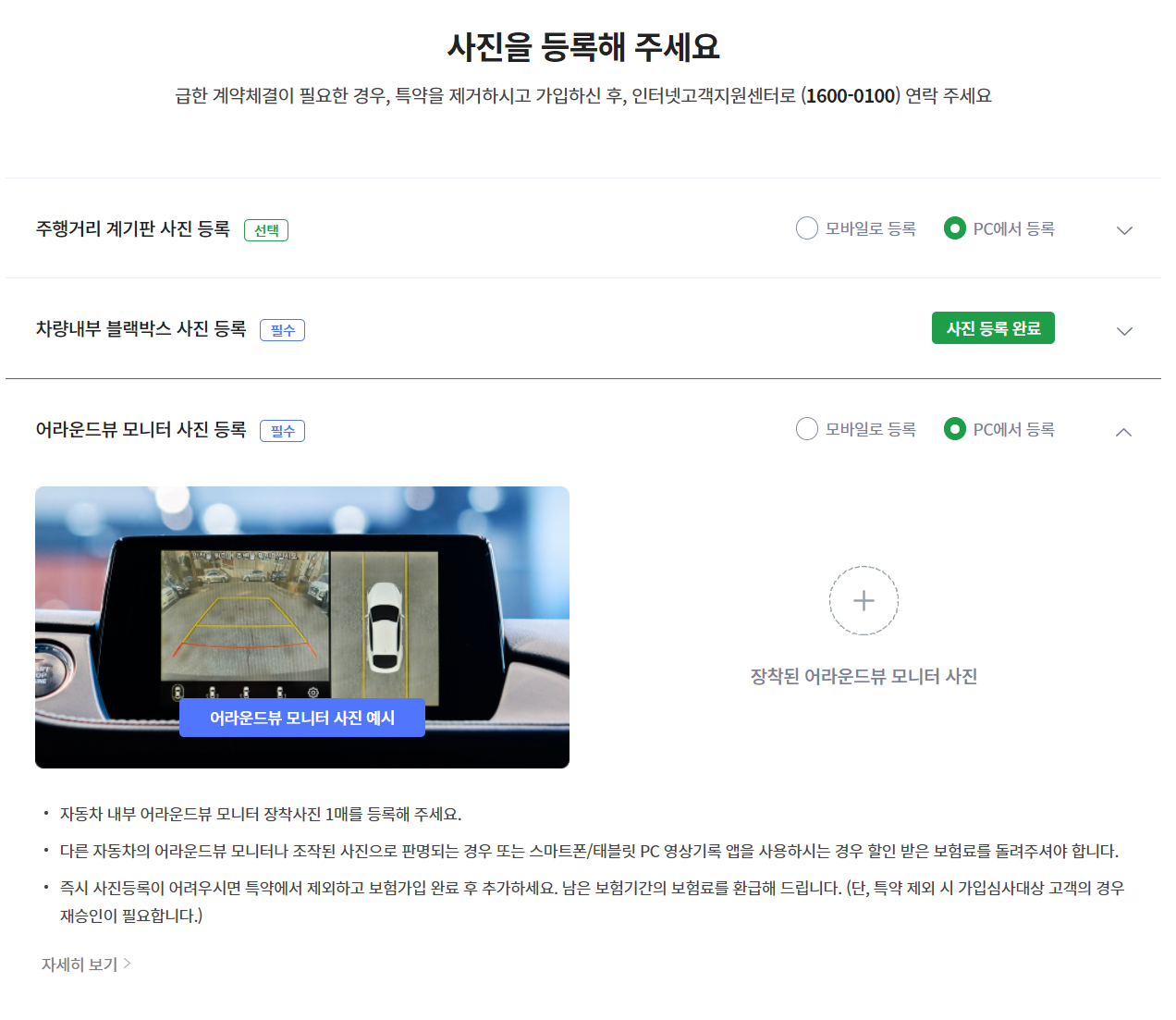다이렉트 보험 갱신 화면에서 원래는 주행거리 특약이랑 차량내부 블랙박스 특약은 원래 있었는데 어라운드뷰 모니터 특약은 없었거든요. 그런데 이게 추가가 되어서 어라운드뷰 모니터 있는 차의 경우 추가로 자동차보험을 할인받을 수 있었습니다.