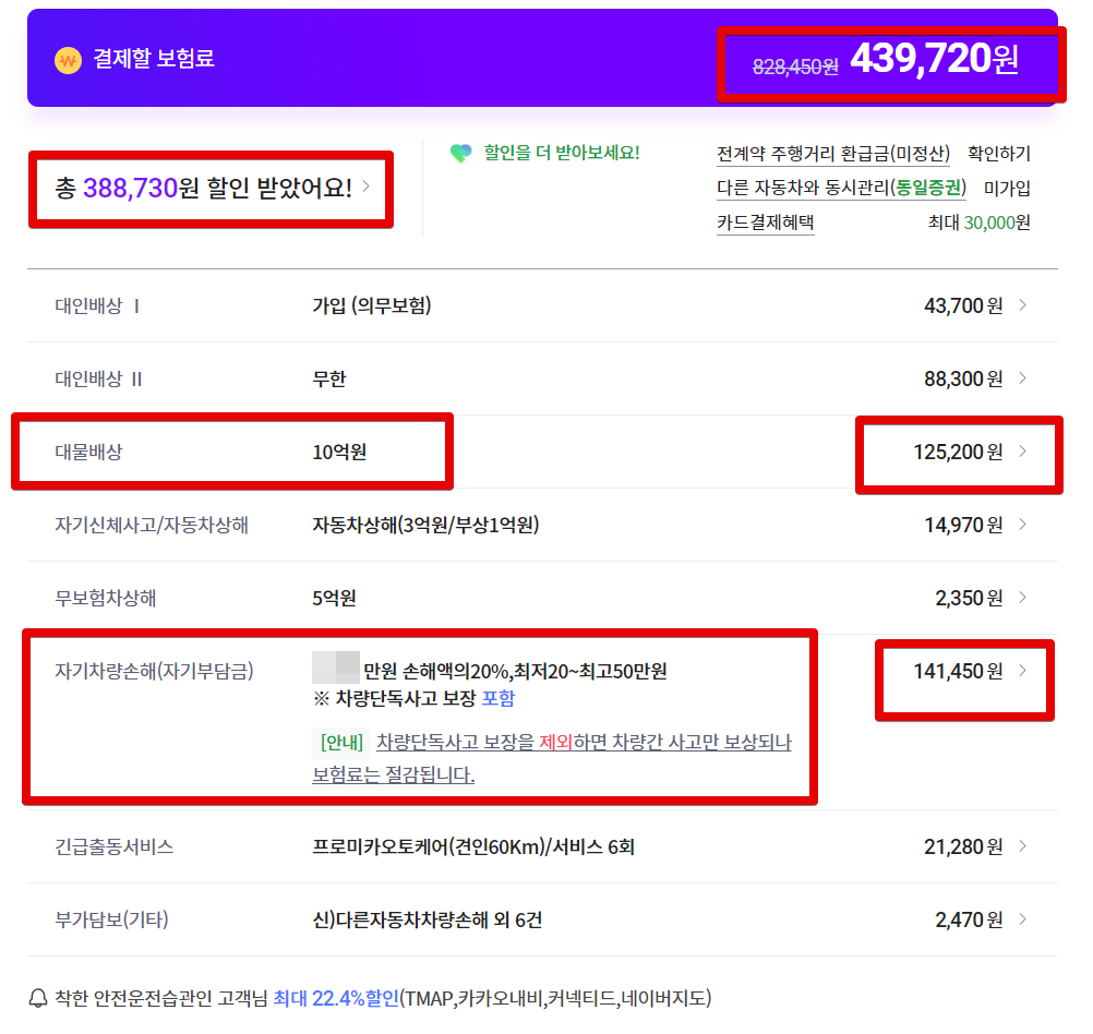 이렇게해서 최종적으로 꽤 많이 절감된 가격으로 자동차보험 갱신할 수 있었네요~