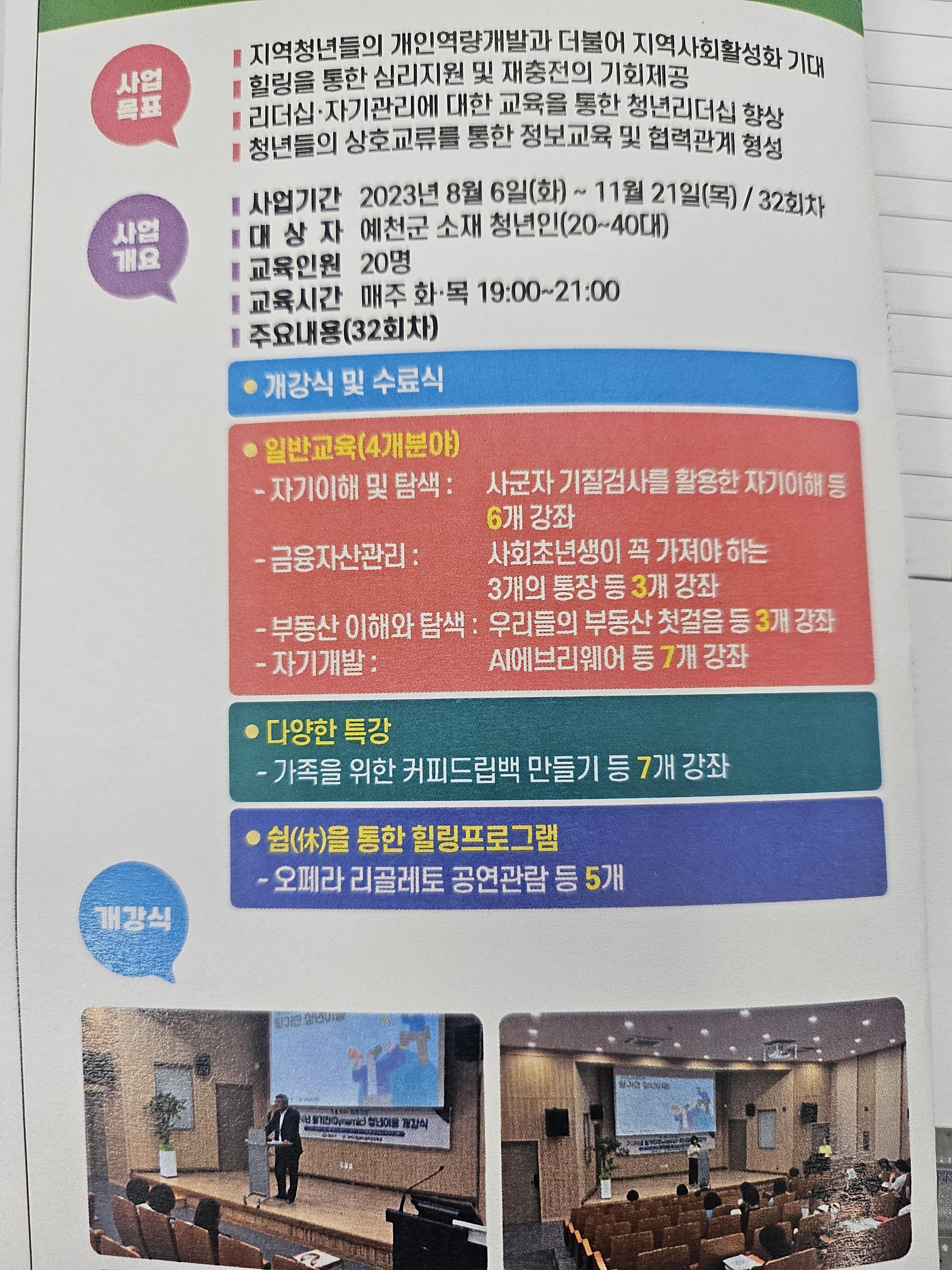 2024 활기찬 청년이음 프로그램은 다양한 교육들로 이루어져 있었는데요. 저는 자기개발쪽 파트에서 강의 3건을 진행하였습니다.