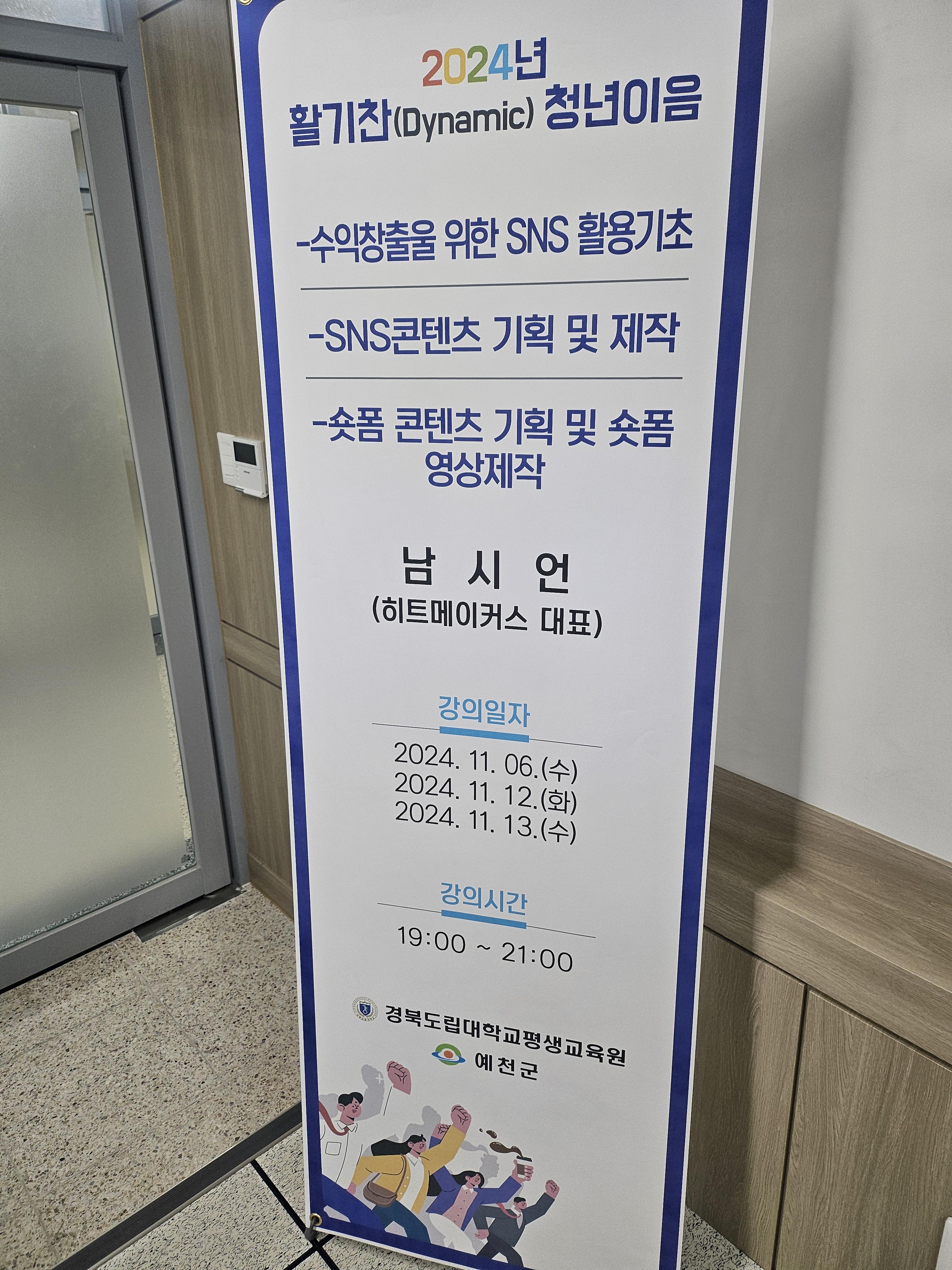 2024 활기찬 청년이음 프로그램에서 한 꼭지로 수익창출을 위한 SNS 콘텐츠 기획 제작 강의 진행했습니다.