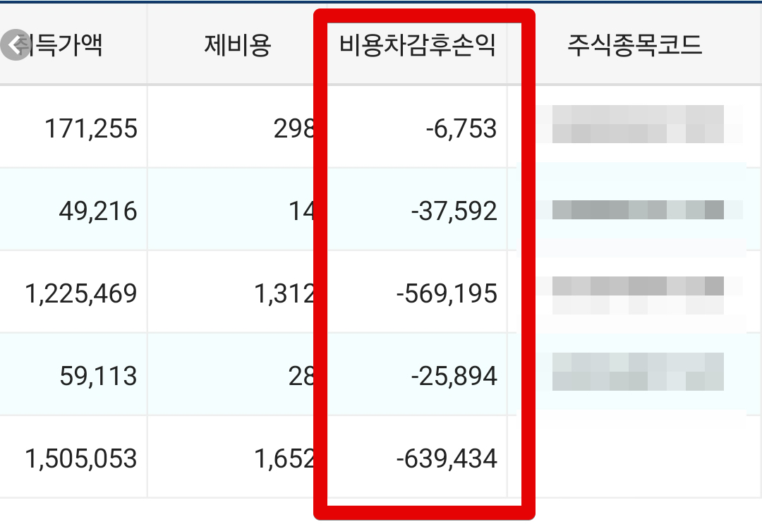 현재 증권사 2곳을 쓰고 있기 때문에 양도세 계산은 증권사 2곳을 모두 합산해서 계산해야합니다. 이익을 본 종목과 손실을 보고 있는 종목을 적당히 섞어서 매도하였습니다.