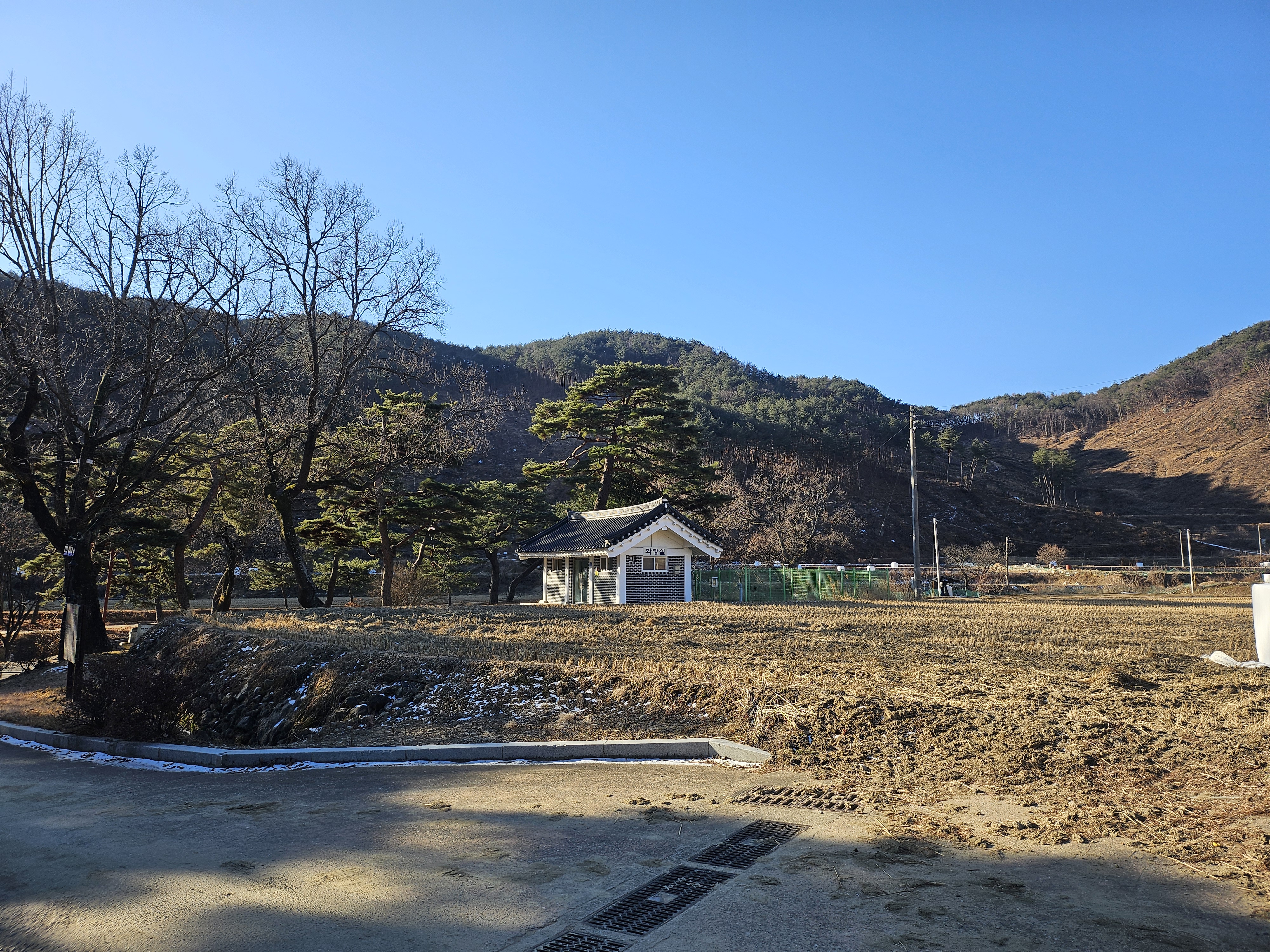 초간정 입구에 있는 주차장에도 눈이 덜 녹아있는 모습이었습니다. 시내권보다 조금 더 추운 곳으로 보입니다.