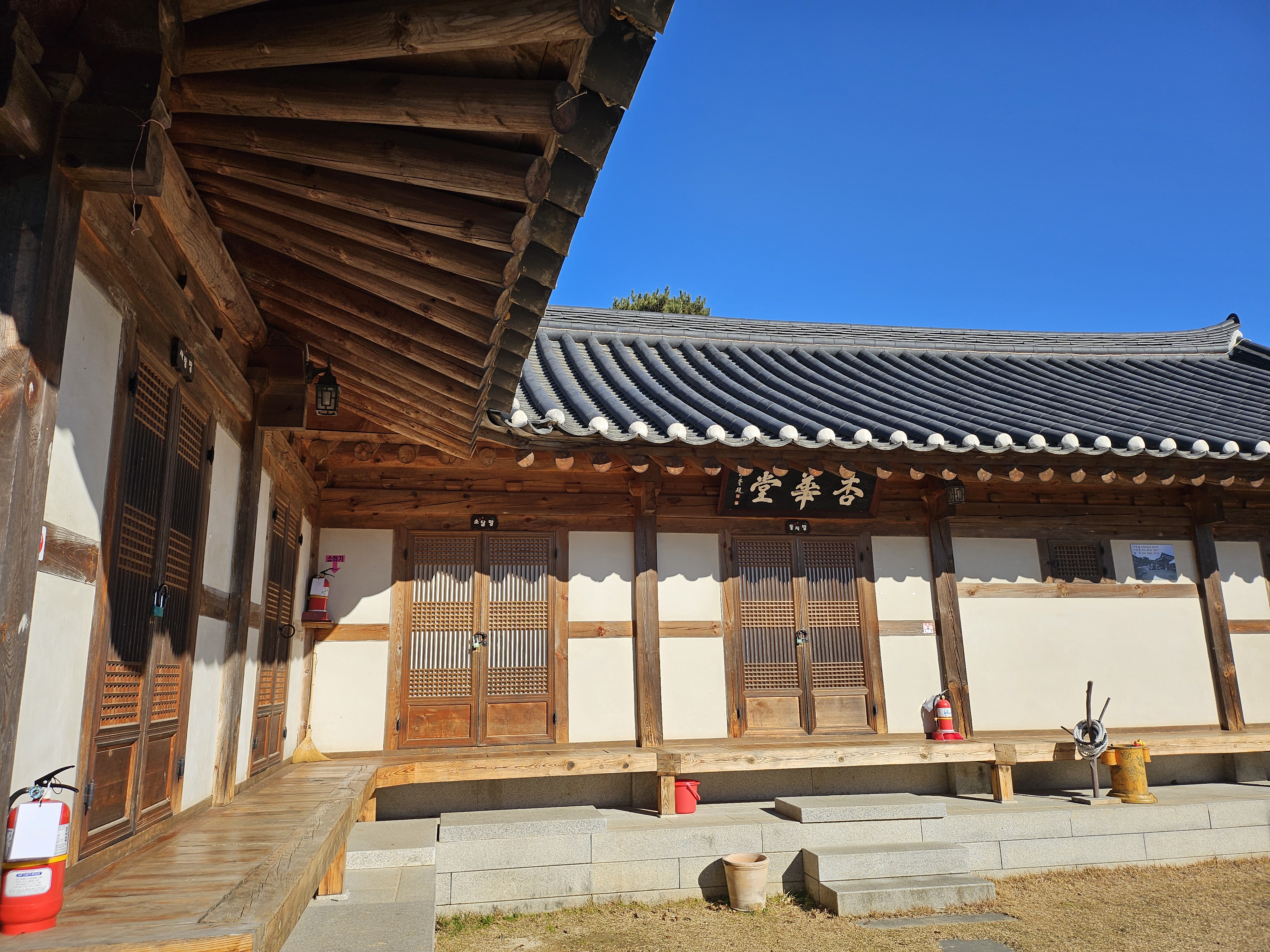 이쪽이 한옥체험관에서 운영하는 숙박시설입니다. 수영장 시설 바로 옆에 붙어있습니다. 바깥쪽에서는 안쪽에 안보이도록 돼 있어서 살짝 감춰진게 굉장히 매력적이었어요.