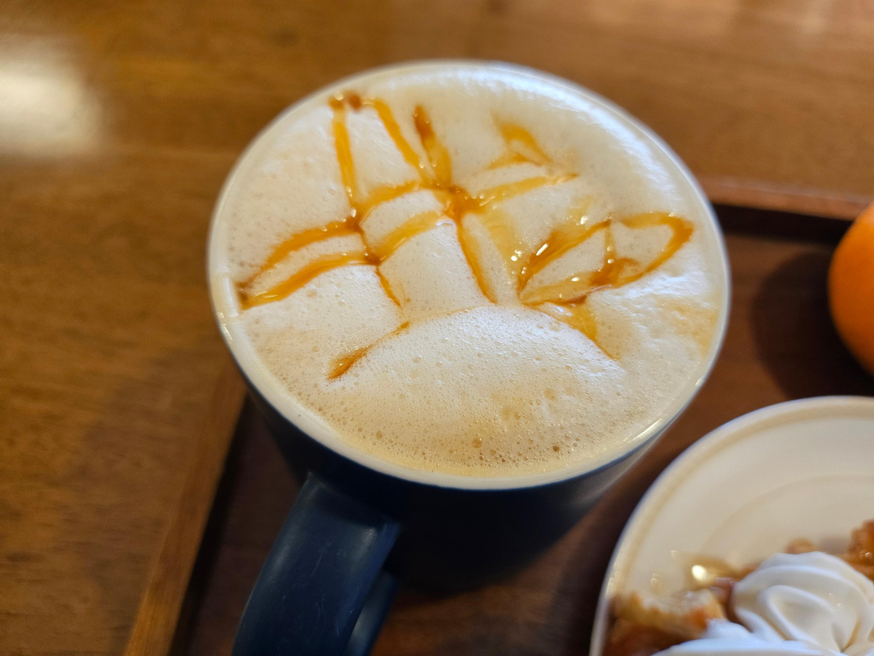 음료는 카라멜 마끼아또로 골라보았는데 양이 푸짐하고 따뜻한 커피라서 추운날 언 몸을 녹일 때 좋았습니다.