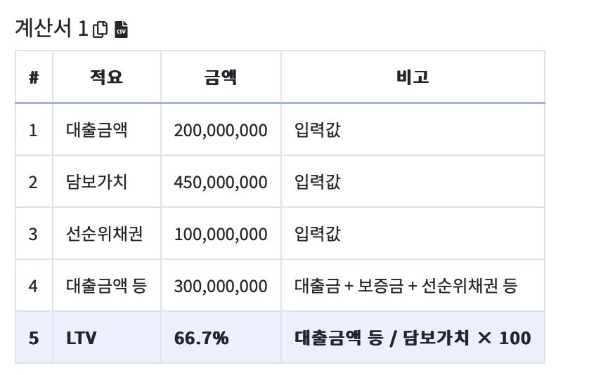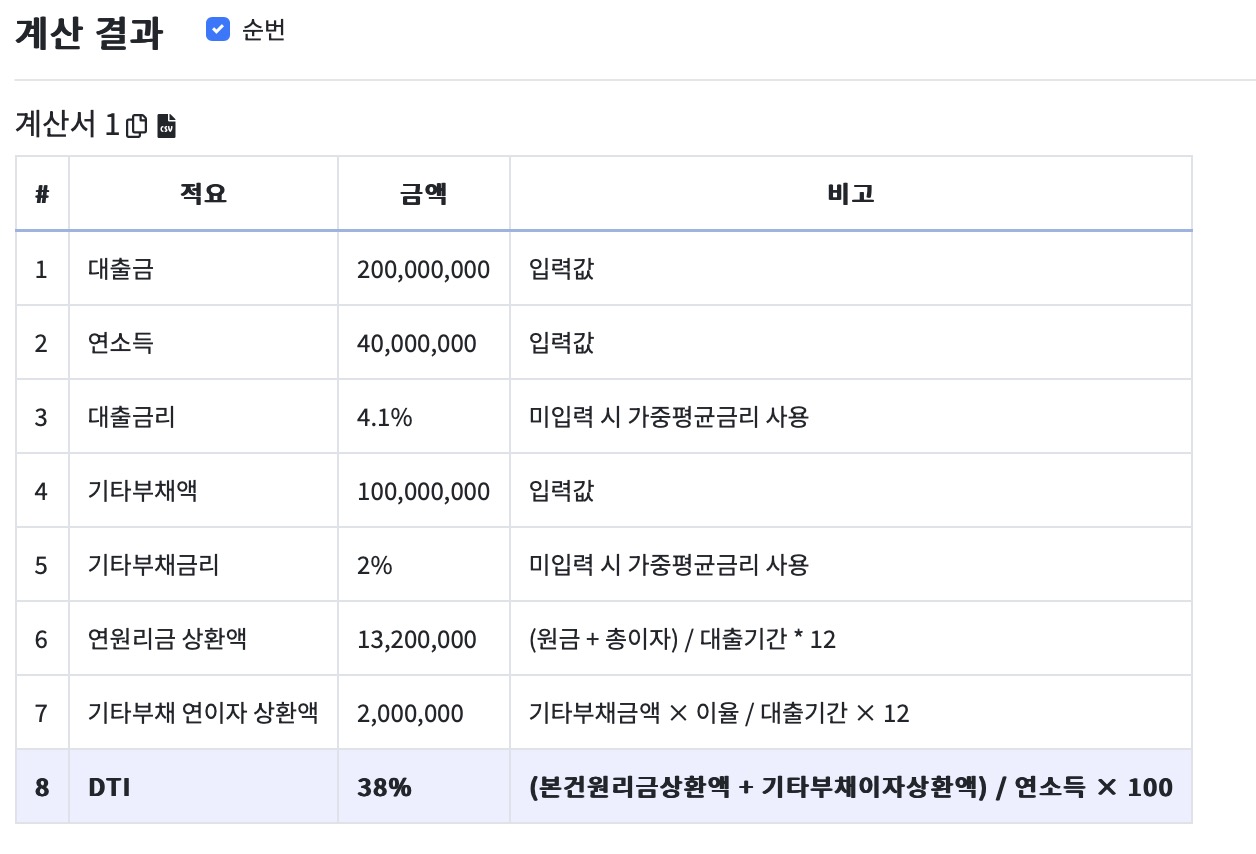 이렇게 계산하게 되면, LTV는 66%, DTI는 38% 정도가 나오기 때문에 안정권이라고 볼 수 있을 것 같다.